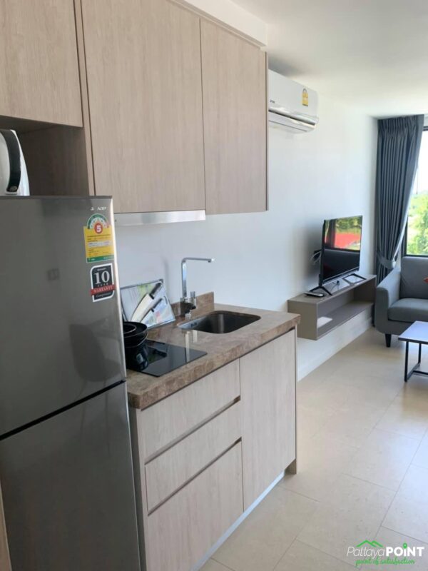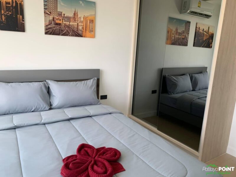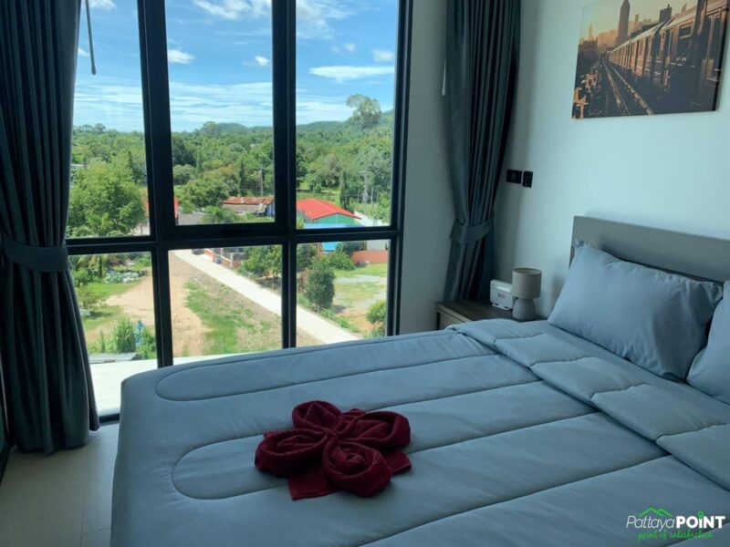Sea Zen BangSaray is a low-rise 7-storey condo with 2 buildings and a total of 156 residential units. The ground floor swimming pool is at the front of the building. There is a gym on the ground floor overlooking the outdoor swimming pool. The unit has 1 bedroom, 1 bathroom, and is 26.1 square meters in size. It is fully furnished and just 400 meters walk to the beach from the condo. There are seafood restaurants and a shady atmosphere. The bedroom has a mountain view. The project’s standard facilities include a lobby, swimming pool, fitness, relaxation garden, passenger lift, car park building, key card door, and 24-hour security. The selling price is 1,490,000 baht.