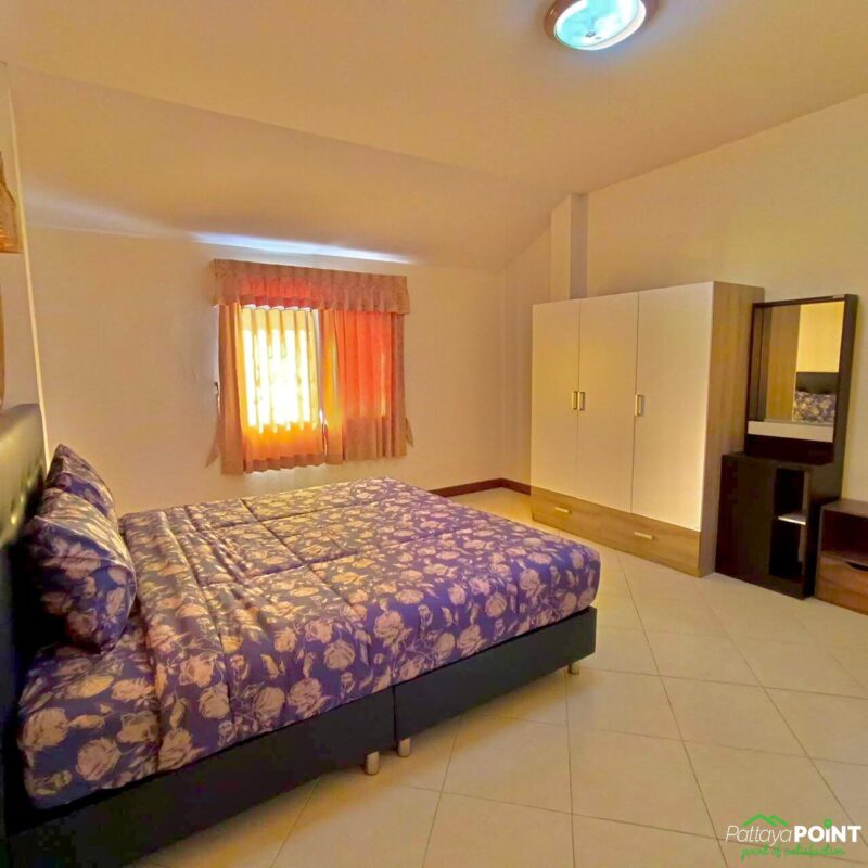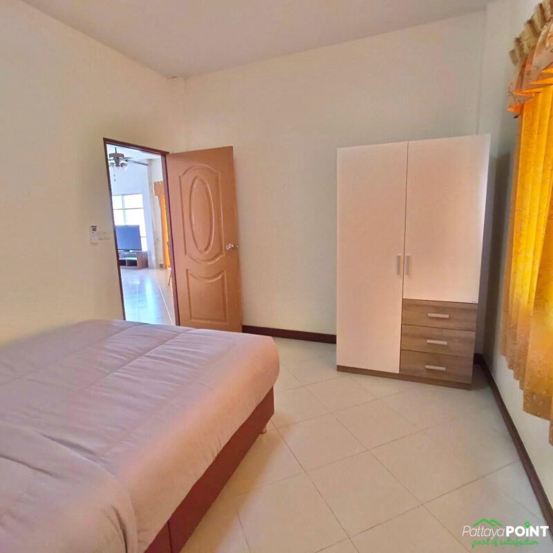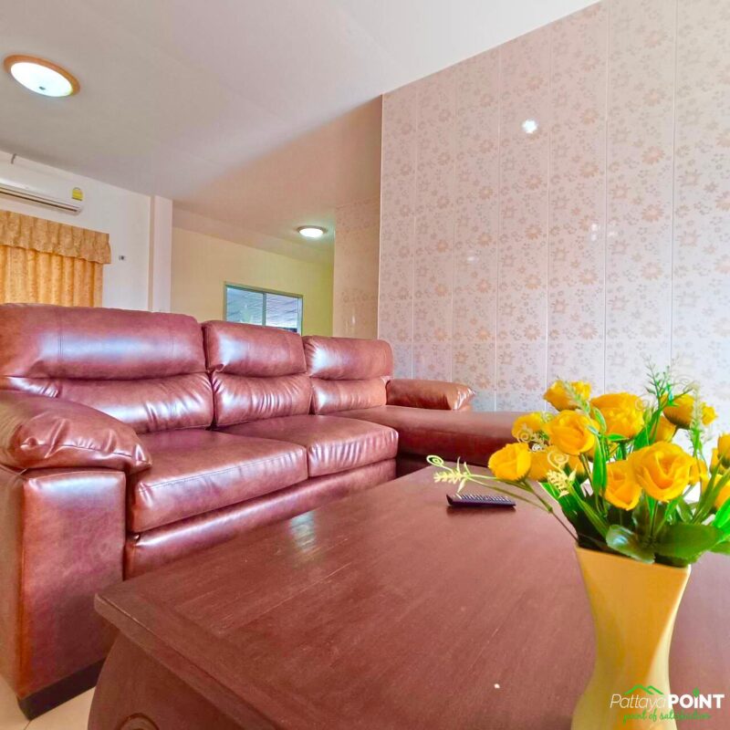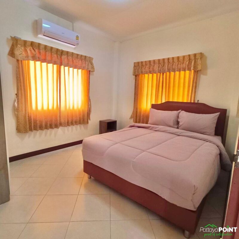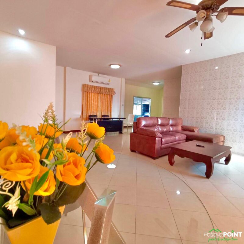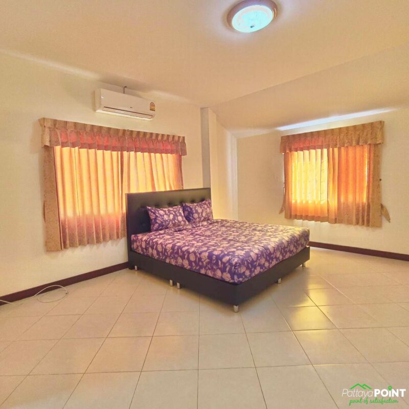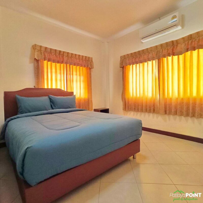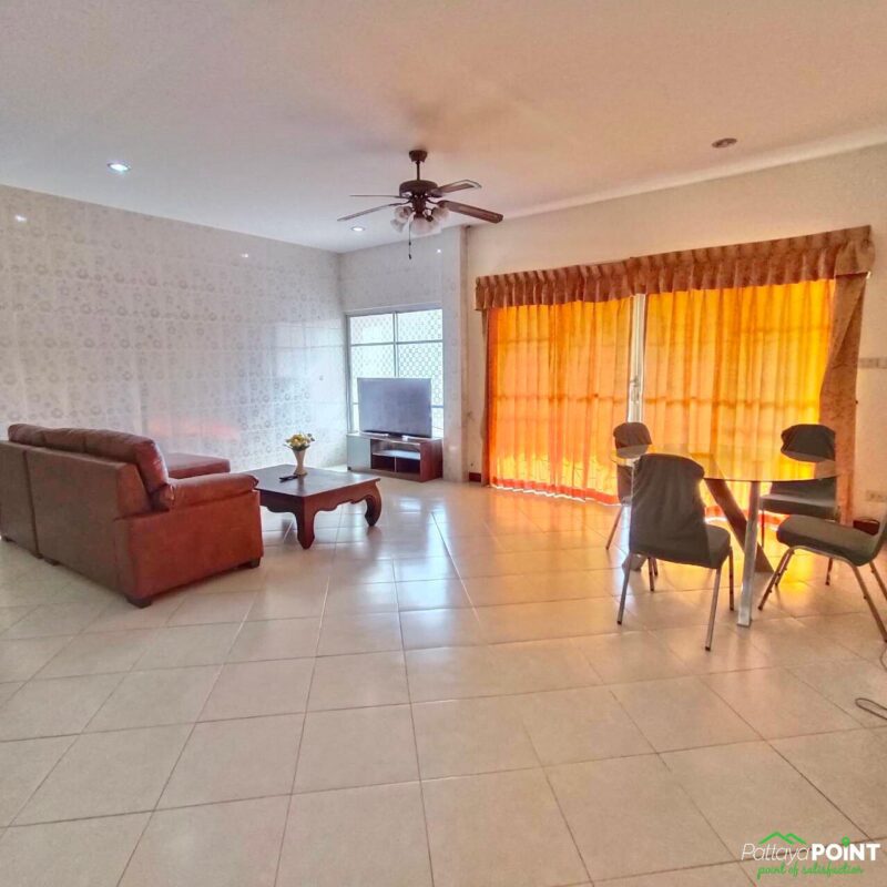 A 4-bedroom partly furnished family home in Soi Siam Country Club, located in the east of Pattaya. The property features 4 bedrooms, 3 bathrooms, a large kitchen, air conditioning, and 24-hour security. The project offers spacious inner roads, a communal pool, and a children’s playground area.