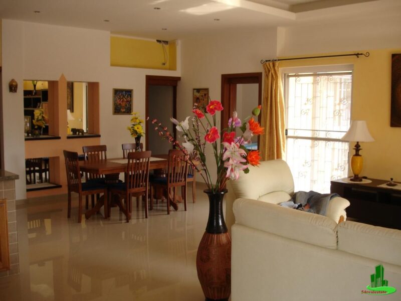 The property boasts a spacious garden on the 600 square meter land. There are 3 entrance doors, with the second floor having its own private entrance. Additionally, there are 3 water tanks with rainwater recycling, 3-phase electricity, a car parking portico, and 2 automatic gates. The villa is furnished.