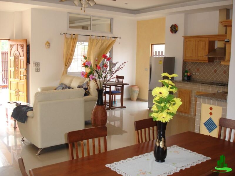The villa is located in a highly developing residential area within the Tropicana Village. It is 300 meters away from the new Jomtien second road, which is experiencing rapid development, and 1 kilometer away from the beach.