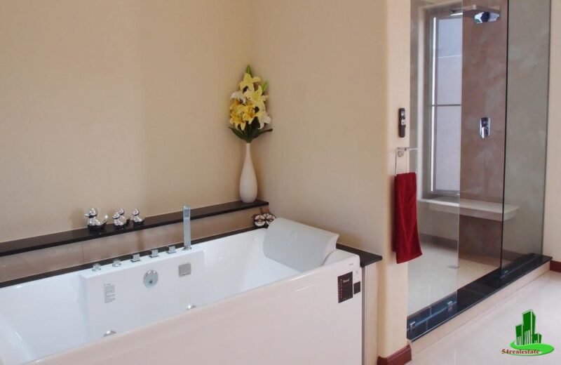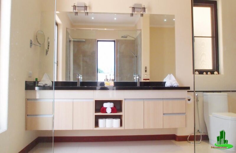 The master bedroom has a full HD 55″ LED TV and benefits from a large 4.5 meter full walk-in double wardrobe. The luxury bathroom consists of granite topped double sinks, double shower (rain and waterfall with bench) and relaxing Jacuzzi bathtub.