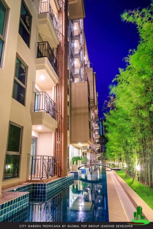 New one-bedroom, one-bathroom condo located in the new City Garden Tropicana. The condo is partially furnished with a European kitchen and fitted bathroom. It is fully air-conditioned. The condo is owned by a Thai company, making it easy to transfer ownership to a new owner. Facilities in the building include a swimming pool, gym, car park, key card entry, and 24/7 security.