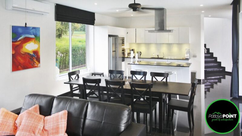 Located directly inside the famous Phoenix Golf & Country Club just outside Pattaya and less than 2 km from the beautiful Jomtien Beach, you can buy or rent this amazing 3-floor luxury villa with a spectacular view over the golf course.