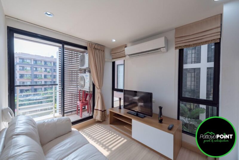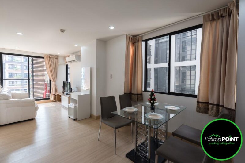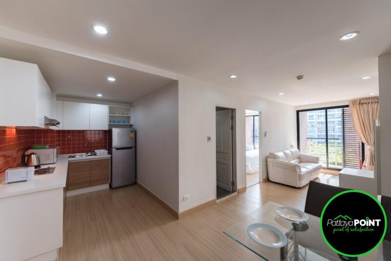 Neat and tidy 43.68 square meter (470 square foot) one bedroom corner unit located on the 5th floor in the Pride Condominiums Central Pattaya.