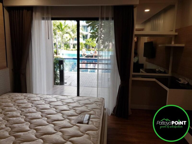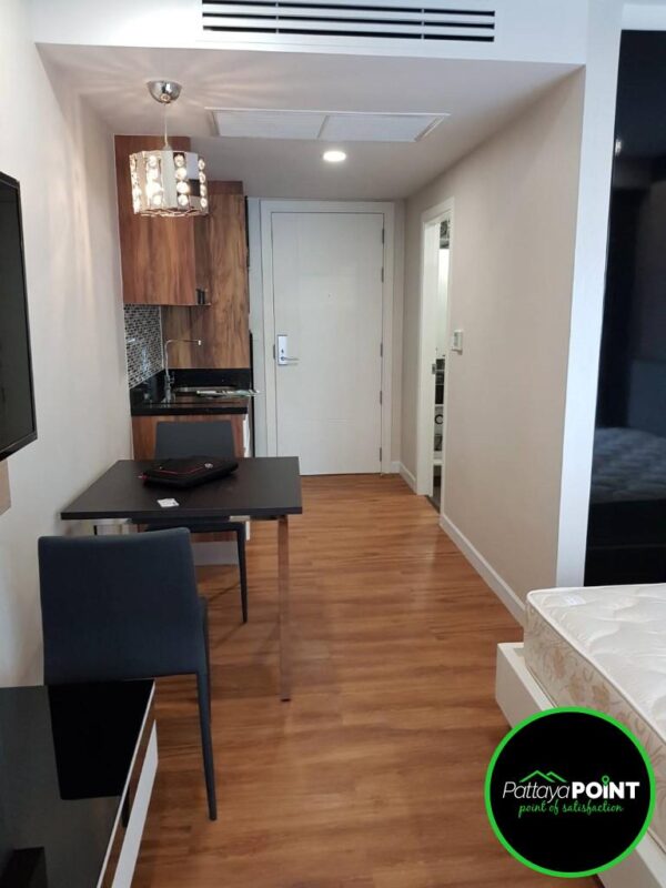 Nice 25sqm studio with pool access in the Dusit Grand Park Condominiums. Fully furnished with high quality furniture. Modern European kitchen and bathroom. Residents enjoy a large swimming pool, gym, and kids zone. There is 24/7 security. The property is only 5 minutes away from Jomtien Beach and a convenient store.
