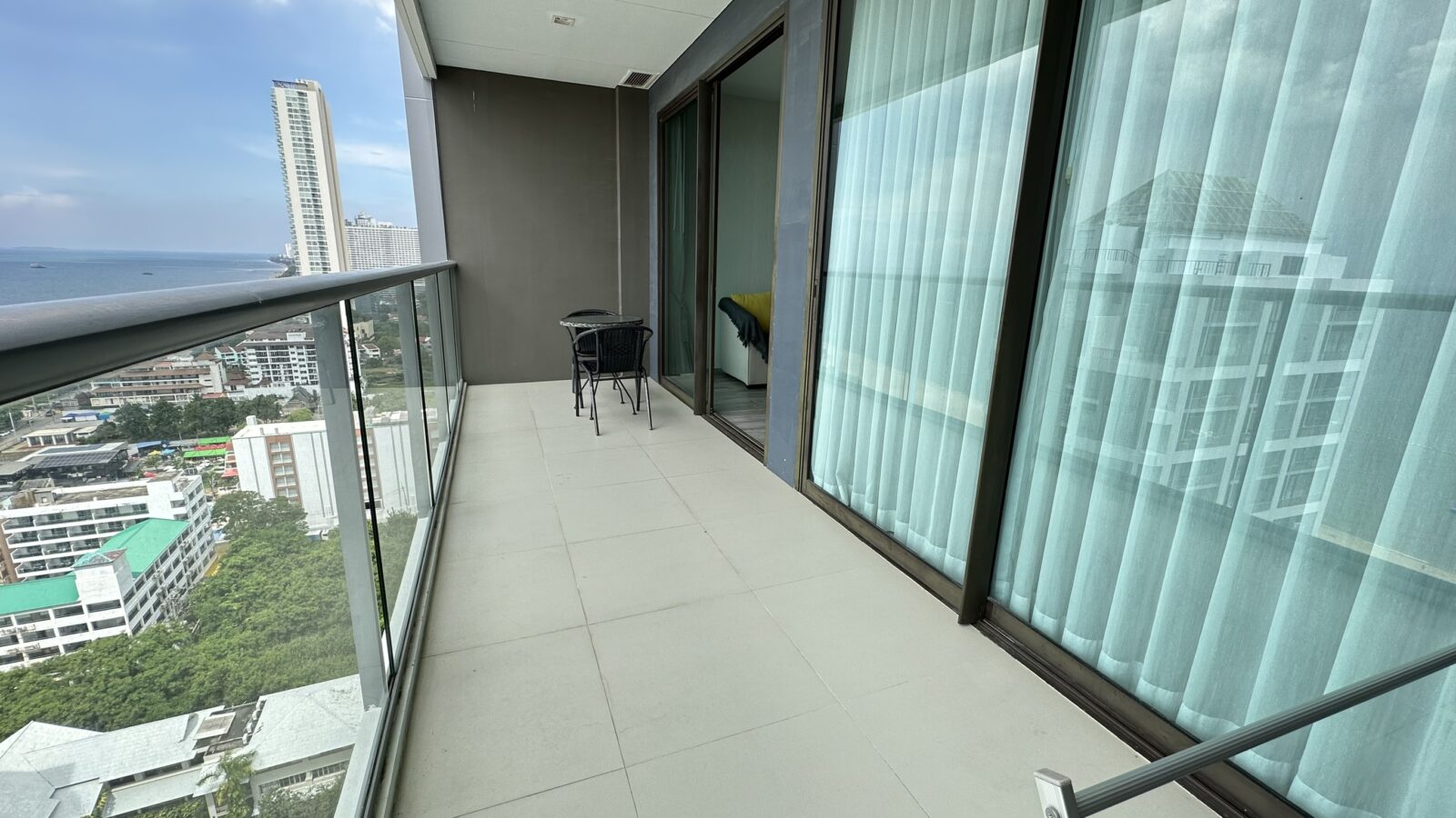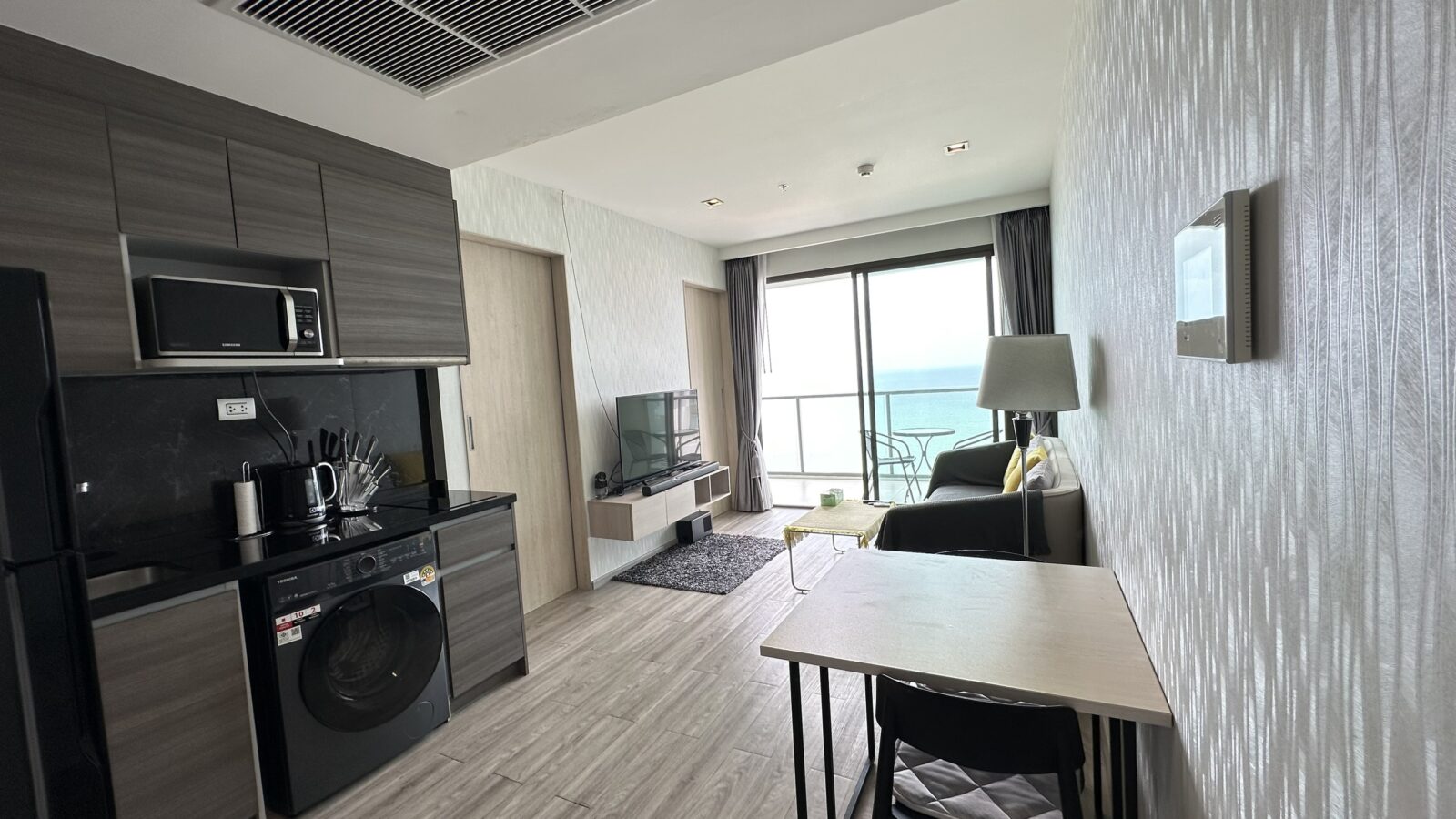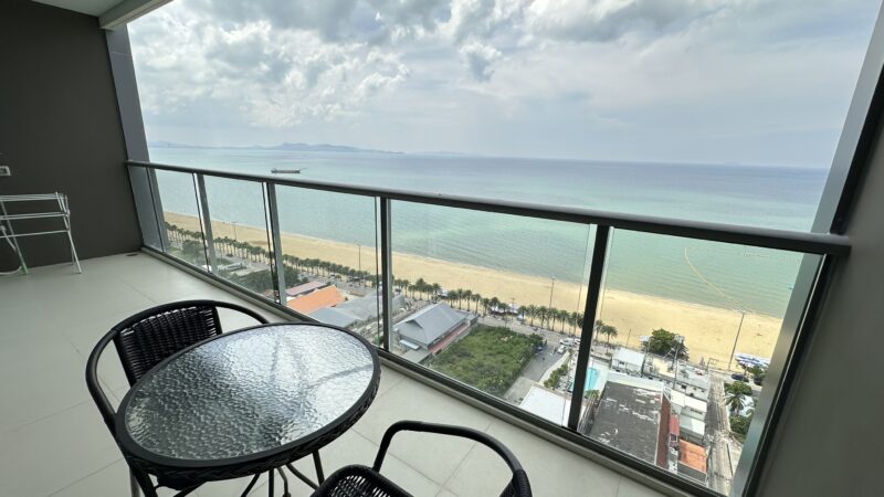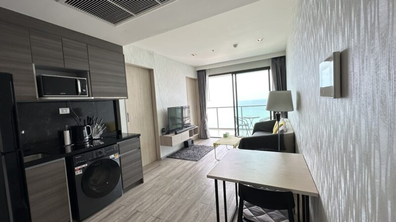 Brand new beachfront 47 sqm (505 sq ft) one bedroom, one bathroom condo located on the high floor (20th)  in the newly completed Aras Condominiums Jomtien. Fully furnished and air conditioned, with European kitchen and luxury bathroom. The condo features a nice balcony with panoramic sea views.