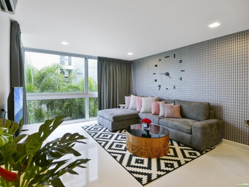 Spacious 117 sqm three-bedroom, two-bathroom condo located on the 3rd floor in the Club Royal Condominiums Wongamat. Fully furnished and air-conditioned, with a European kitchen and luxury bathroom. The condo offers a pool view and a nice balcony with panoramic sea views. Amenities include a communal swimming pool, gym, nice foyer, car parking, key card entry, and 24/7 security. There are also nice restaurants located close by, and it’s only a few minutes by local taxi to Central Pattaya. Waiting for your personal touch.