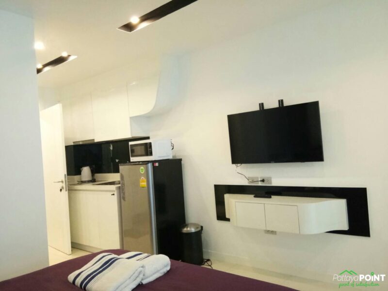 Fully furnished 25 square meters (269 square feet) studio located in the newly completed City Center Residence in Central Pattaya is now available for rent. Nicely positioned on the first floor with access to the garden. The complex has a luxury swimming pool, fitness center, underground parking, landscaped gardens with a water fountain, and 24/7 security. It is in a good central location close to 3rd Road, with easy access to all amenities. Long-term lease available.