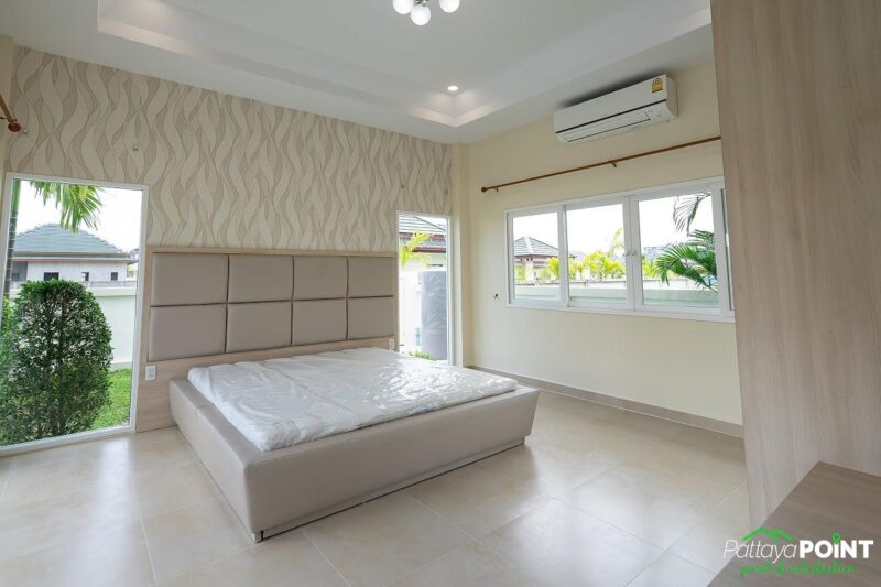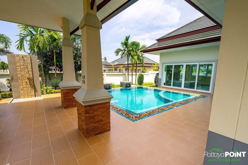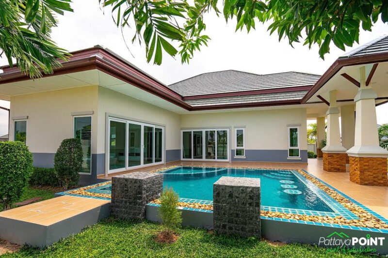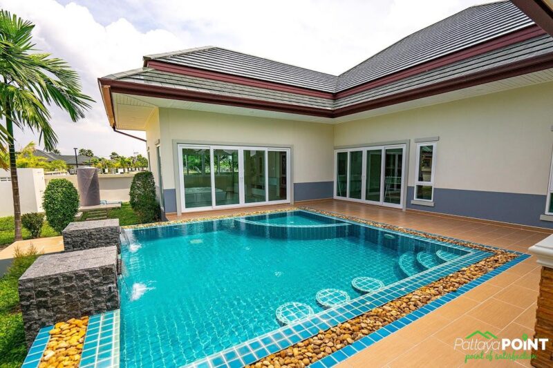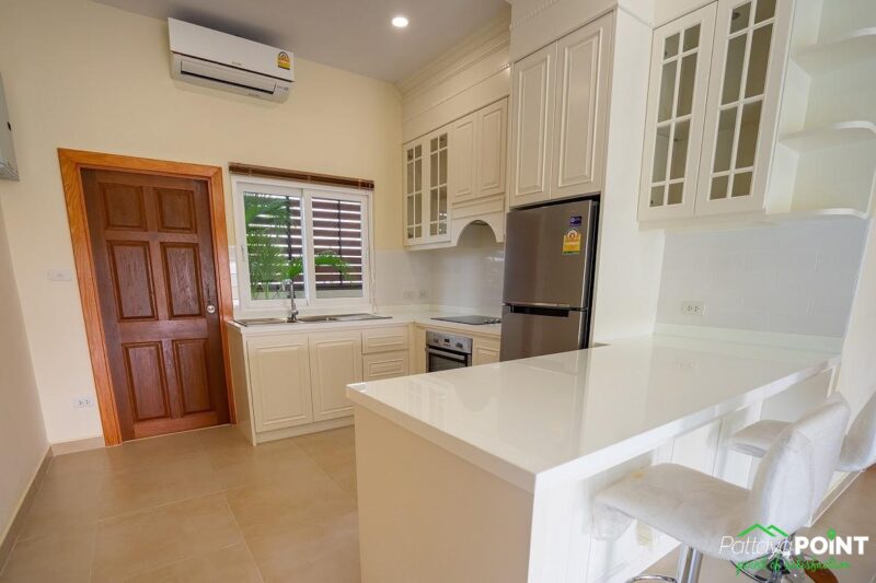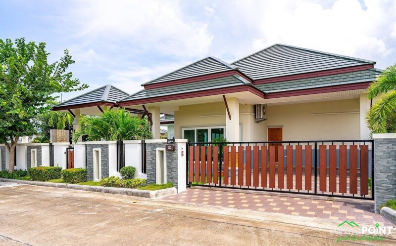 Beautiful pool villa located on 120 TW in a lovely secure gated community in Bangsarae. Boasting 3 bedrooms, 2 bathrooms, and a European fully fitted kitchen. The villa also features a large living/dining area and is fully air conditioned throughout. Please contact us now for an appointment to view.