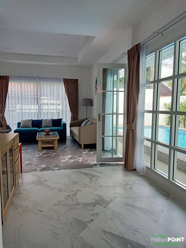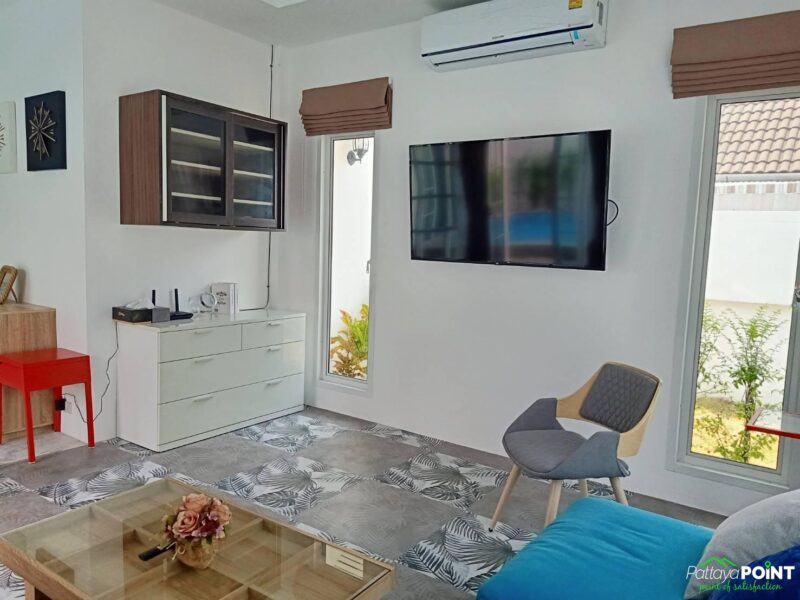 Pool Villa, located on 60 TW in a lovely secure gated community in South Pattaya. Boasting 3 bedrooms, 3 bathrooms, European fully fitted kitchen, and a washing machine. The villa also features a large living/dining area and is fully air-conditioned throughout. Please contact us now for an appointment to view.