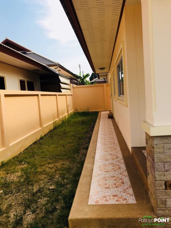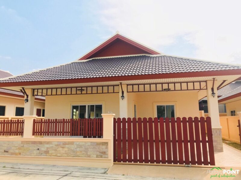 A brand new 2 bedroom, 2 bathroom bungalow is for sale in Nongket yai, north Pattaya. The property is ready to move in and has a land size of 63 TW (252 square meters or 2712 square feet).