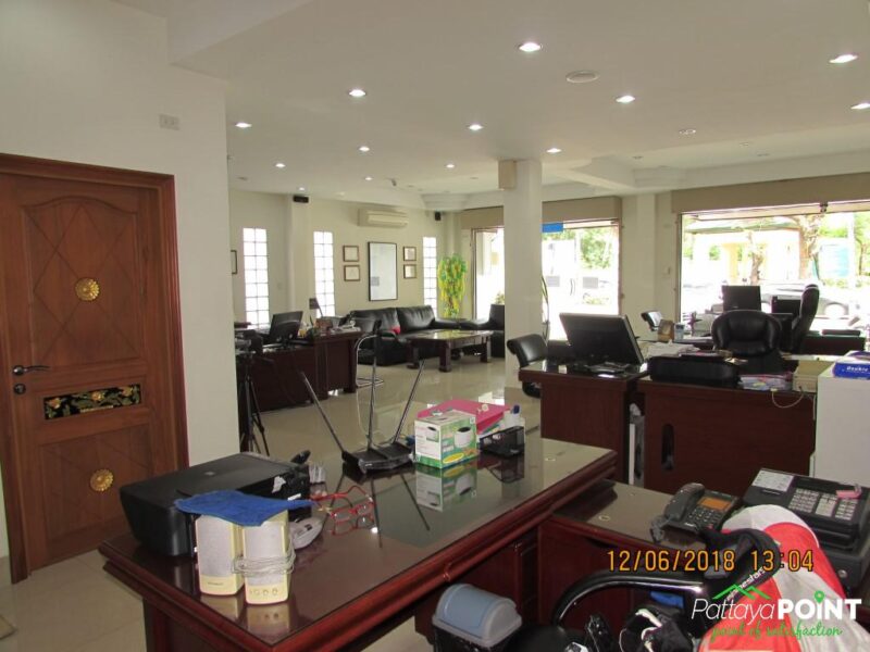 Corner 4 floors commercial building for sale, 553 Sqm. in total. This building was built and maintained to a high standard, located in a prime location 300 meters from Sukhumvit Road and 800 meters from Jomtien Beach Road.