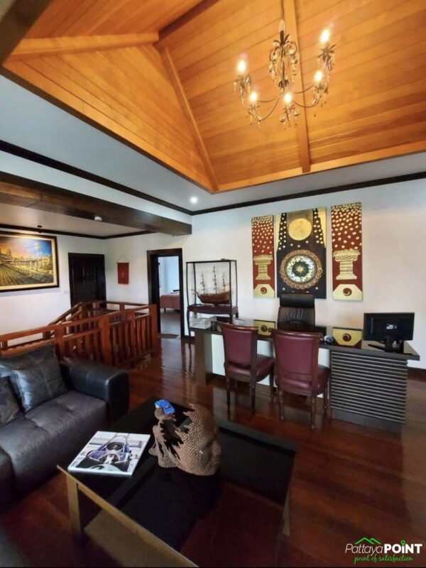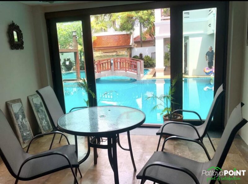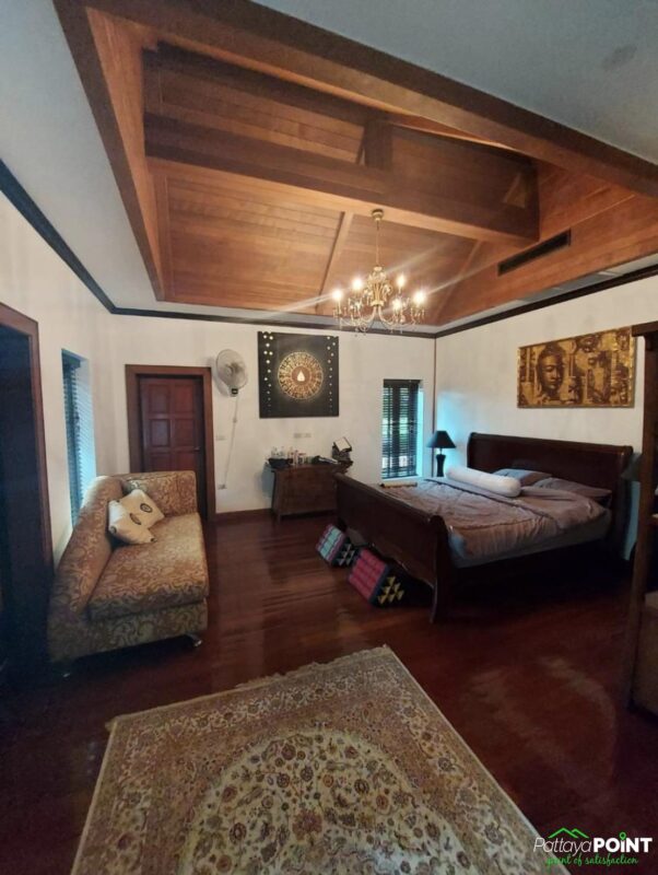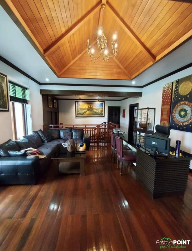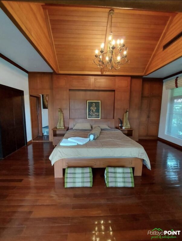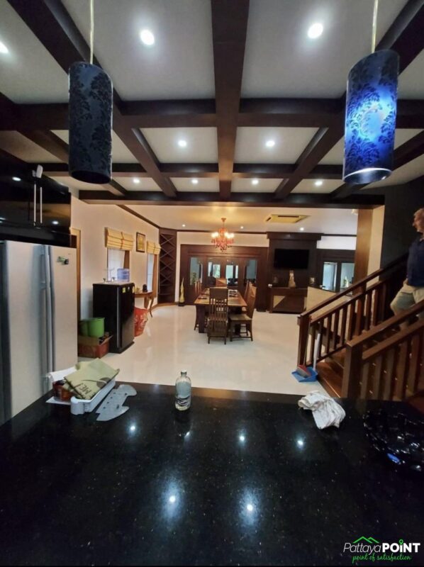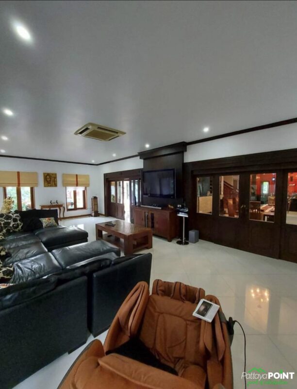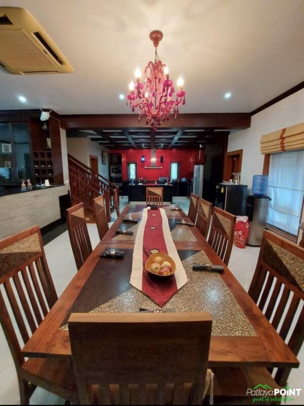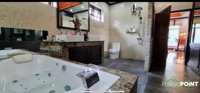 6 bedrooms, 6 bathrooms, 2 living rooms, European kitchen, big private swimming pool, garden for BBQ. There are no common fees. The property is under company ownership and is close to the local market and international school. It is just a 10-minute drive to the beach and Pattaya entertainments.