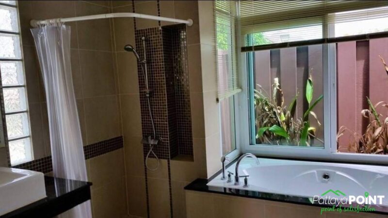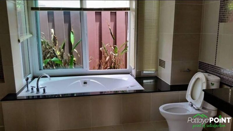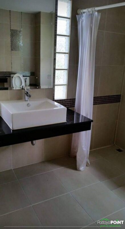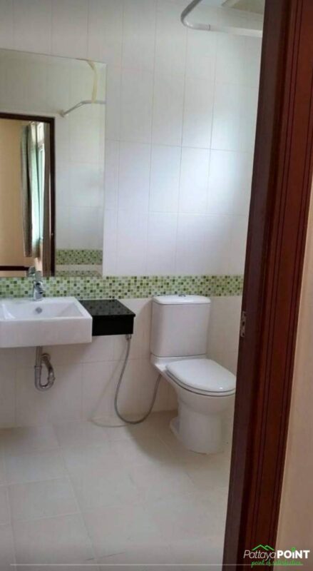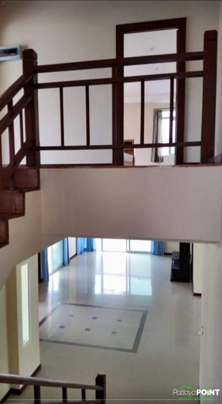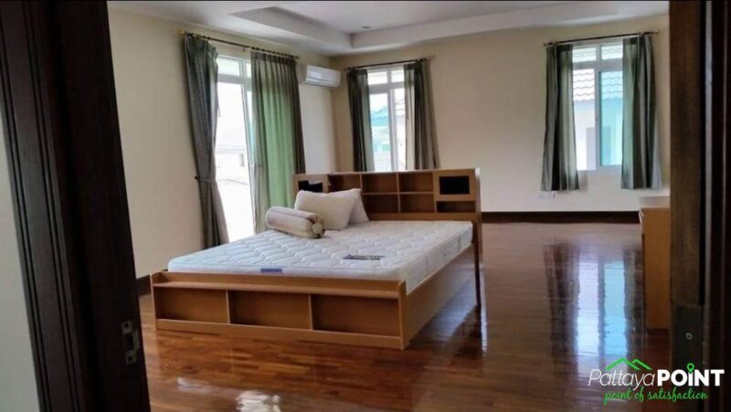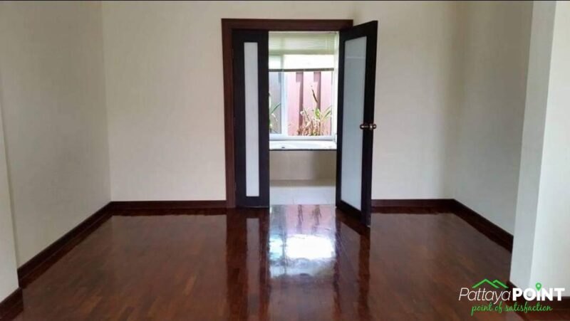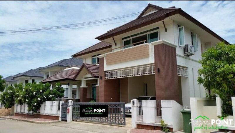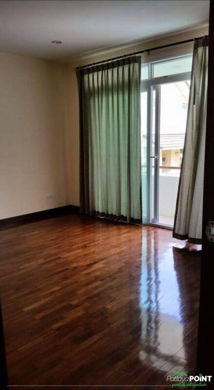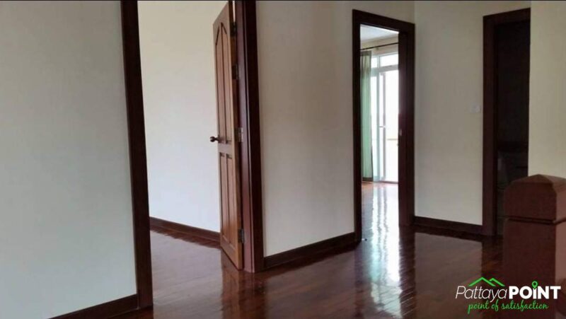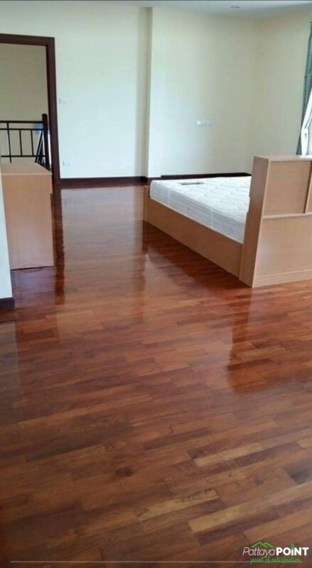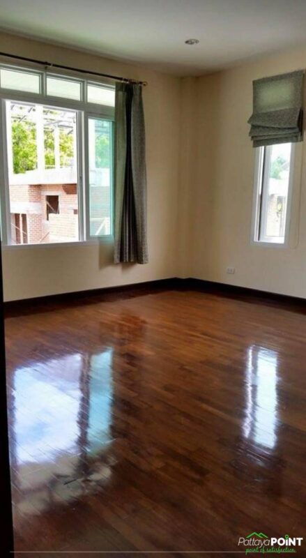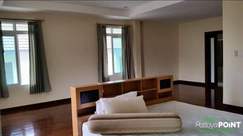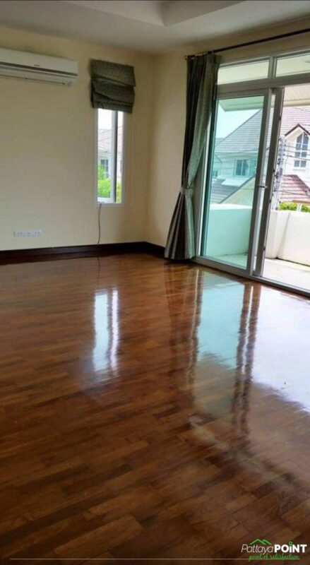 2-Storey Detached House with 5 bedrooms and 5 bathrooms for sale on the east side of Pattaya. This house is located in a quiet atmosphere area and is easy to travel to Sukhumwit Road. The house is well maintained and features beautiful polished wooden floors and a European style kitchen.