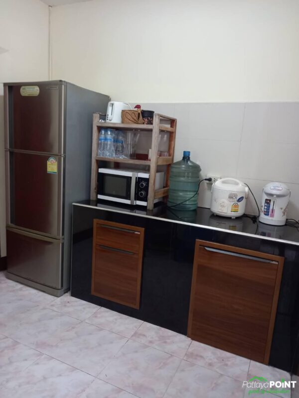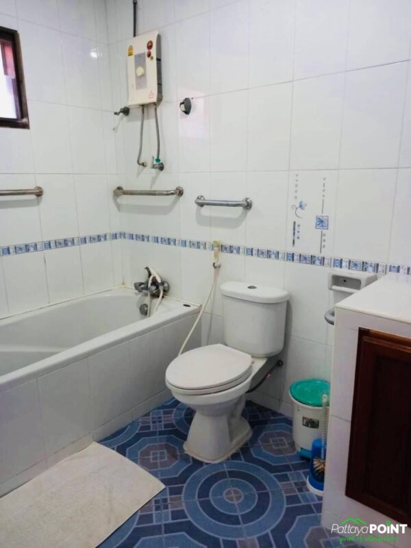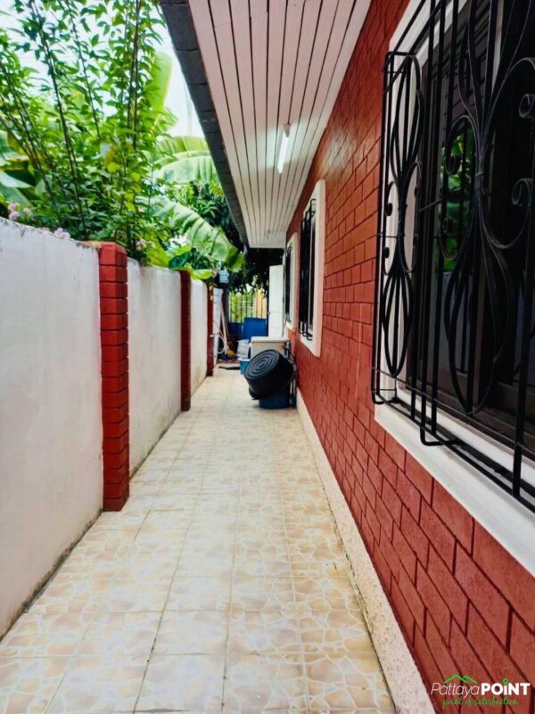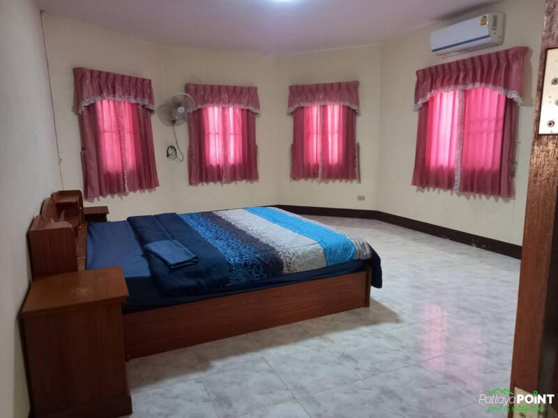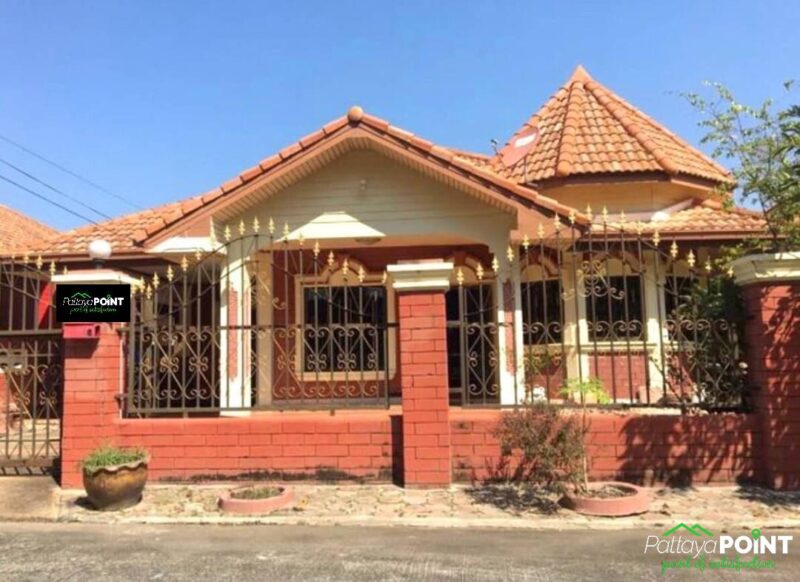 Detached House for Sale and Rent with 3 bedrooms and 2 bathrooms located on Thappraya Road. The house is situated in a quiet area with a nice atmosphere. It comes fully furnished and has a spacious Thai kitchen with full kitchen equipment. Additionally, the house features a large covered car park that is connected to the house.
