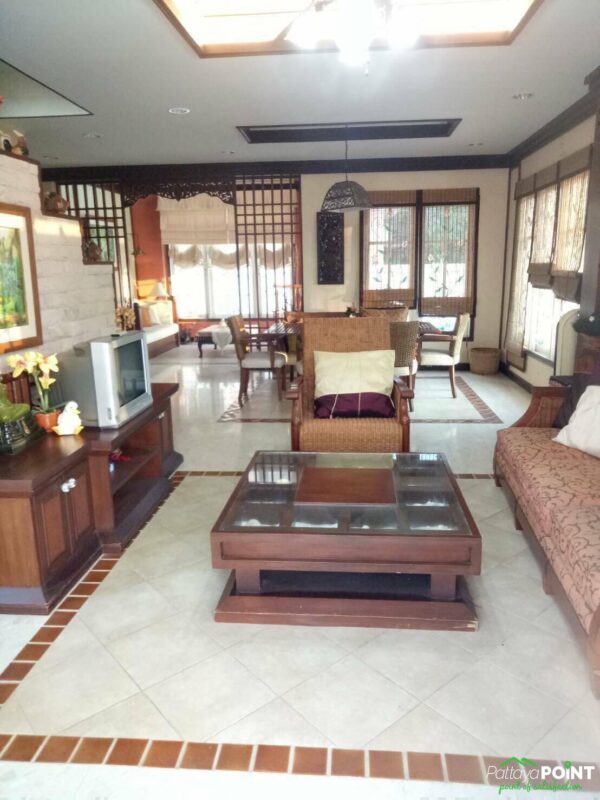 2-Storey Detached House for sale close to the beach. This house consists of 3 bedrooms, 3 bathrooms, 2 living rooms (1 parlor room and 1 living room), 1 multifunctional room, 1 maid room, and 2 kitchens (1 Thai kitchen style and 1 European kitchen style) with full kitchen equipment. The whole house has been newly renovated and decorated with beautiful teak wood furniture and marble tiles, adding significant value to the property. The house is located in one of the best areas in Jomtien, with a 5-minute walk to the beach and easy access to taxi routes for convenient travel.