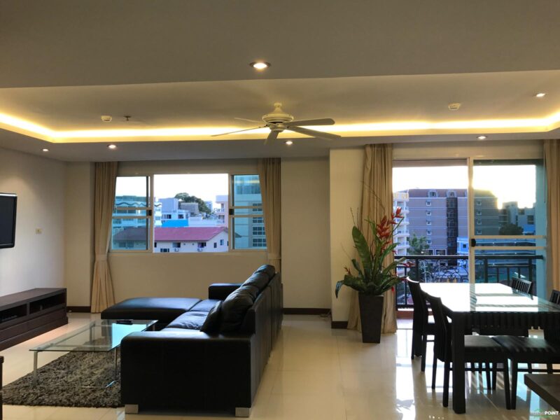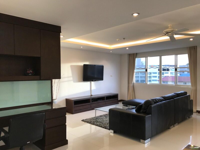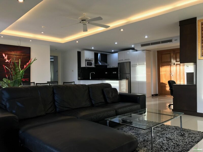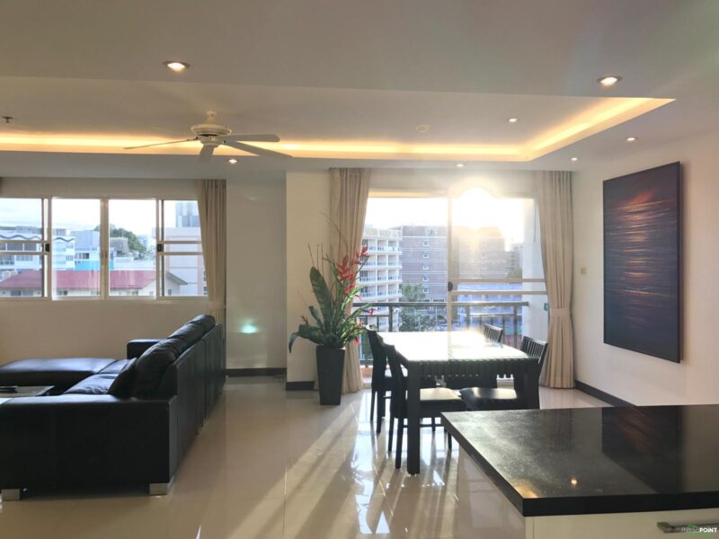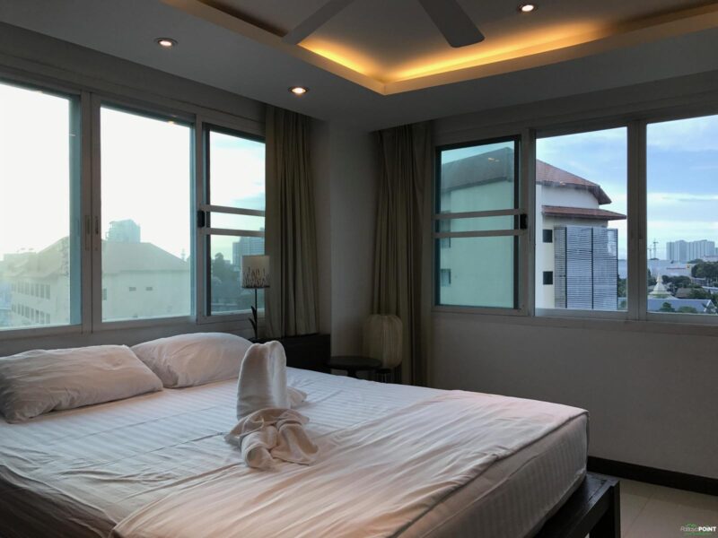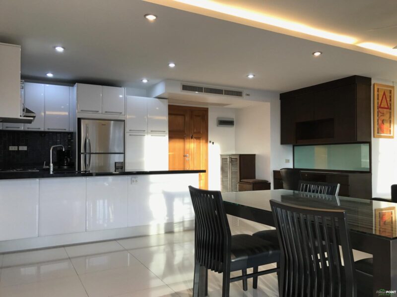 2-Bedrooms 3-Bathroom Condo for Sale and Rent in a downtown location in Central Pattaya. This Condo is a corner unit with a large area of 116 square meters (sqm) and includes its own laundry room. It is fully furnished and offers full facilities, including a sauna, gym, and a large communal swimming pool with 24/7 security. The condo is conveniently located within a 10-minute walk to Terminal 21, Central Festival, and the beach.