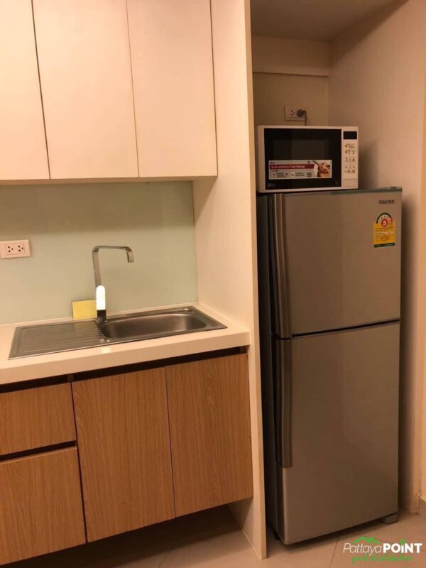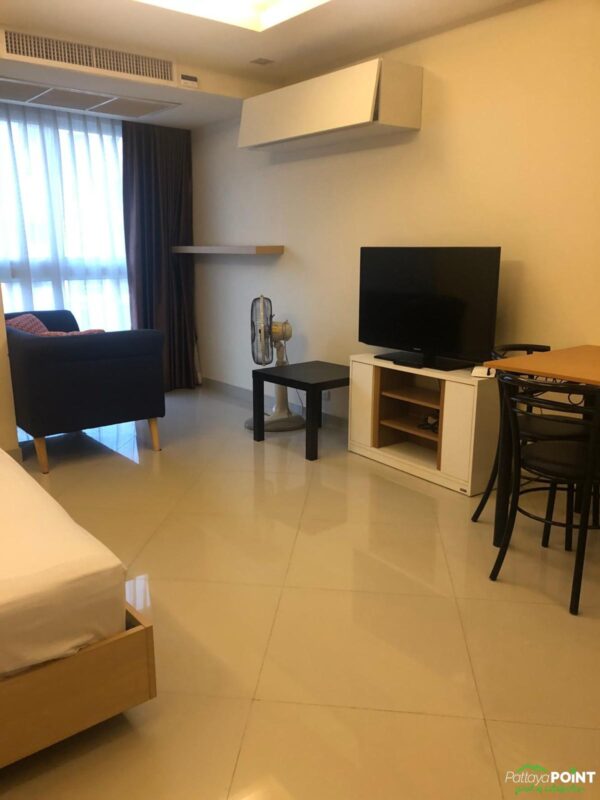 Bargain studio for sale in City Garden Pattaya. The studio is 38 square meters in size.  It comes fully furnished and includes car parking. There is also a large swimming pool. The property is centrally located in Pattaya City.