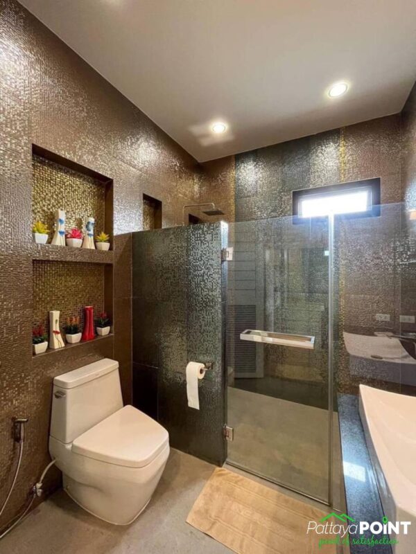 Beautiful 5 bed pool villa for sale east Pattaya. Price for sale 16,000,000 THB. Living area 420 square meters. Land size 640 square meters (160 TW). 5 bed 5 bath. Thai name owned.