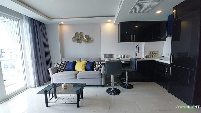 This apartment is located on the 8th floor of Building B and offers a beautiful city view. It comes fully furnished with a modern design. Amenities include a swimming pool with a jacuzzi, high-speed internet, a washing machine, CCTV, and 24-hour security. There is also a safe box for your convenience.
