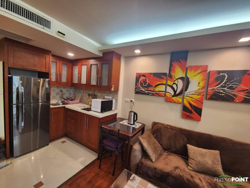 The condo is rented fully furnished as shown in pictures. The rent price is 17,000 THB.