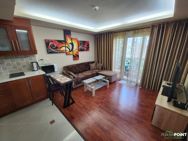 1 bedroom 1 bathroom condo for rent in City Garden Condo. Good sized 47 sqm city view. Building C 5th floor with free internet.