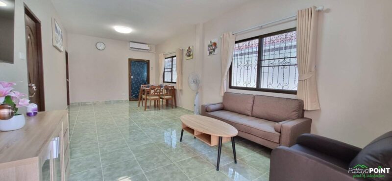 Located close to Jomtien Beach in Pattaya City, near main roads. It is in a gated community with a communal swimming pool.