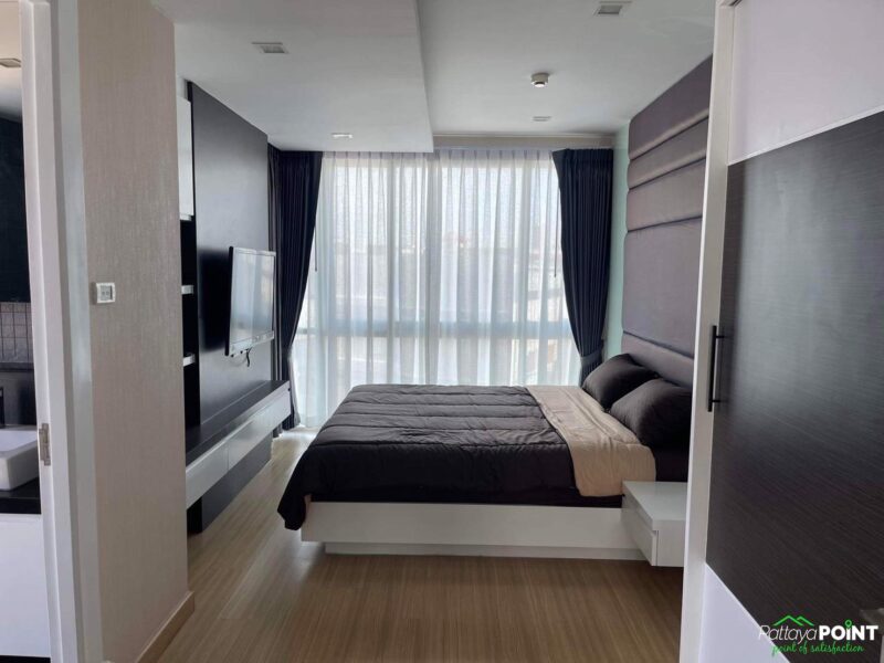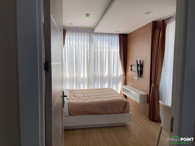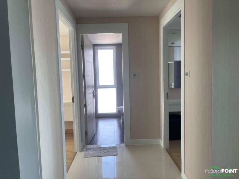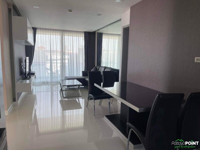 86 square meters 2 bedroom for rent in Apus condo, located just off Pattaya Klang soi next to Big C extra shopping mall. The unit is in Central Pattaya and is ready to move in with a pool view and city view.
