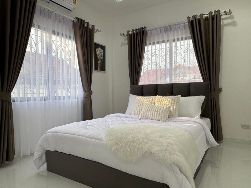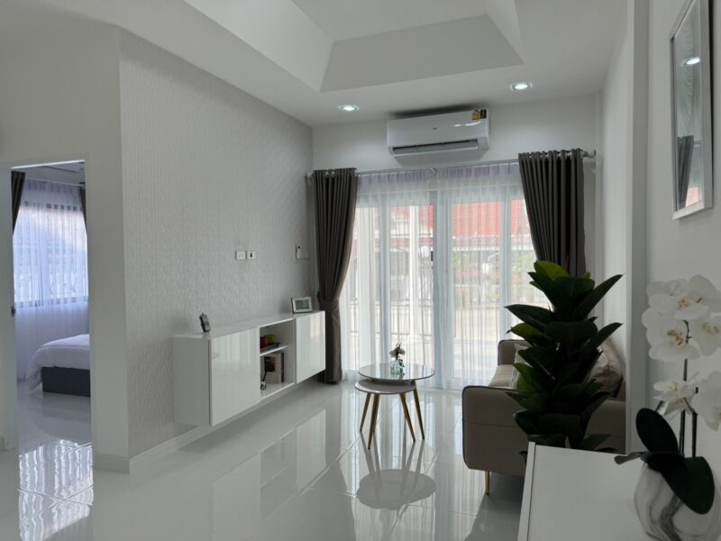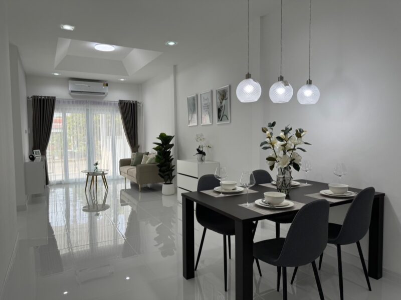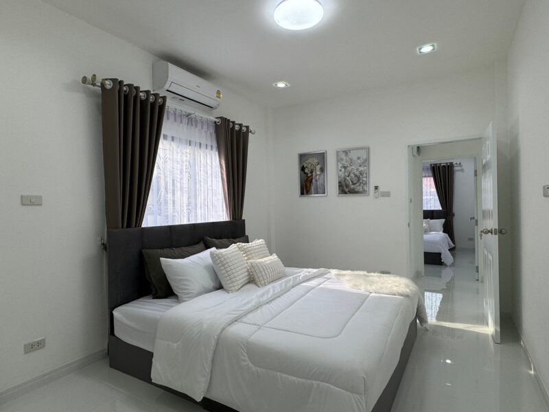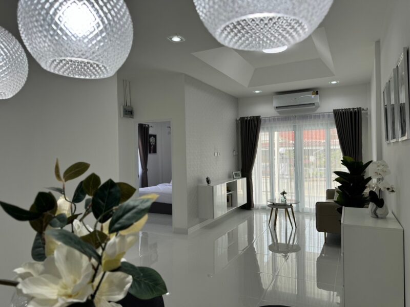 This house is in a village that is quiet and easy to travel to. There is a 24-hour security system and close to many important places such as Pattaya Beach, Jomtien Beach, Central Festival Mall, Sukhumvit Road, Aksorn School. Siam Country Club Golf Course.