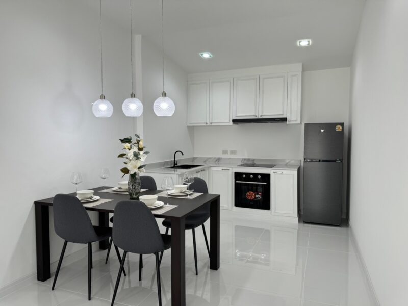 This house has just been renovated and decorated. It has an area of 35 square wah or 140 square meters, usable size of 110 square meters, it has 2 bedrooms, 2 rooms, 1 living room, European kitchen, under the name of a Thai company.