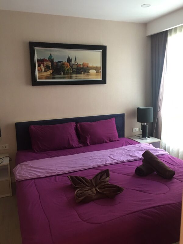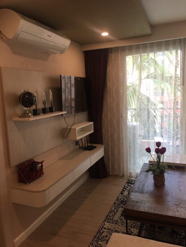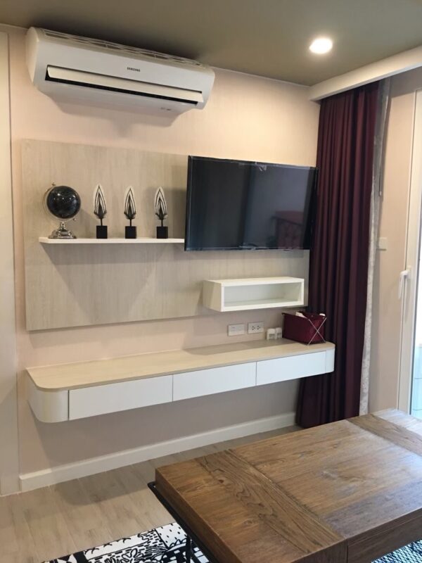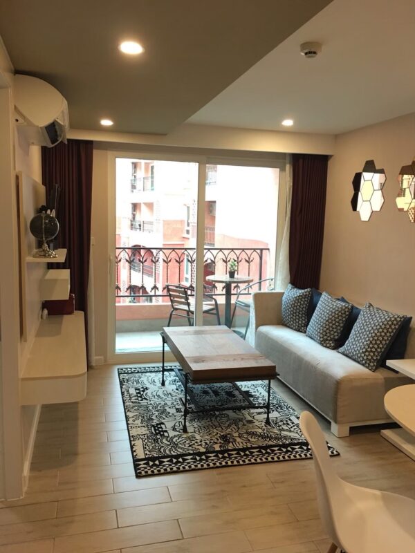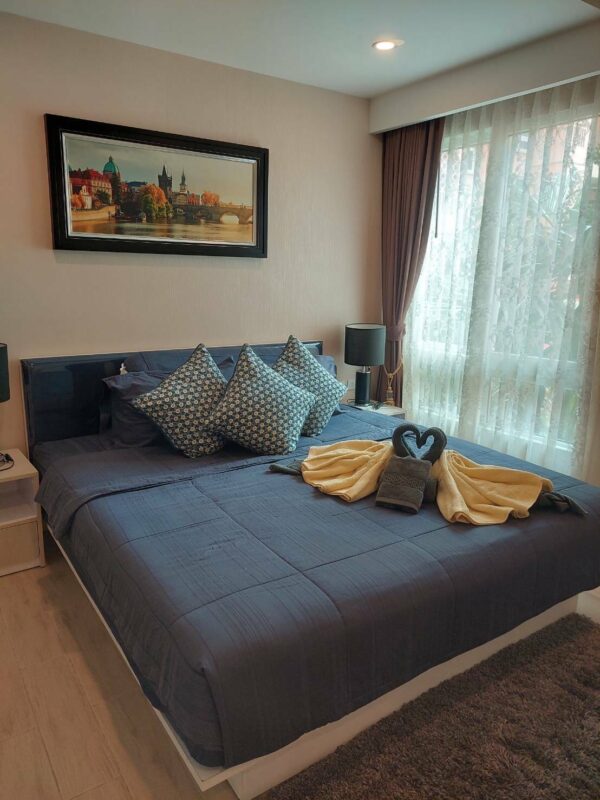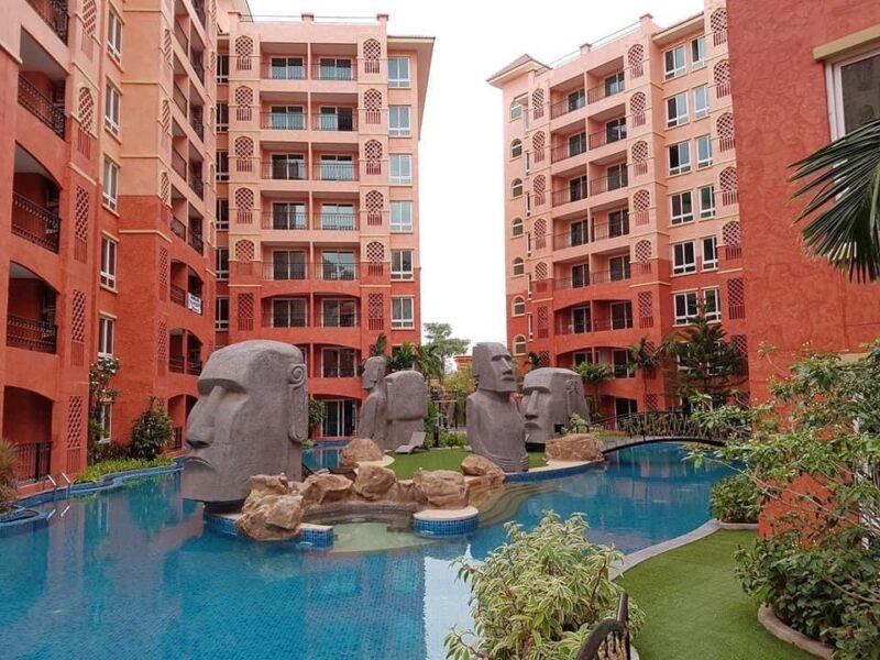 Selling price : 2,490,000 Baht Condo for sale, Seven Seas, Chaiyaphruek, Jomtien, 1 bedroom, size 36 square meters, sell with tenant. Reduced price to just 2,490,000 baht. This unit is in Thai ownership. and already has a tenant Rent is 10,000 baht per month. This unit will be sold with tenant. In addition to being cheap, you will also make a profit. Seven Seas Condo. The project consists of 7 buildings by simulating the names of different islands: Easter Island, Mystery Island, Madagascar, Bahamas, Bora Bora, Seychelles, and Hawaii. It is surrounded by tropical gardens and a giant lagoon swimming pool. The common area is adorned with pirate ships, moai statues, and seating areas to gain the sunshine. The rooms are fully furnished and come with a large balcony and a European kitchen, equipped with a Smart Home system that offers great convenience and 24-hour security systems.