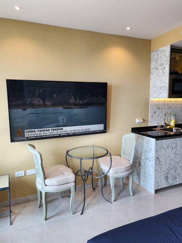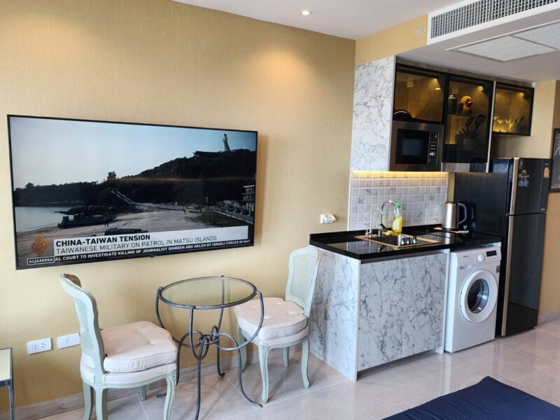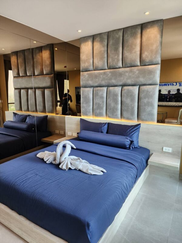 and this room has just been renovated. Condo Riviera Monaco is fully equipped with facilities such as A sky gym with a panoramic, sky pool view, tennis court, lobby, and Riviera Monaco condo has 40 floors, located in Na Jomtien Soi 4 on Jomtien Beach. 5 minutes from Jomtien Beach.