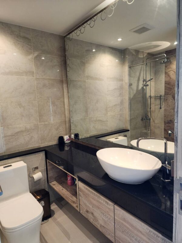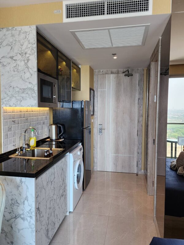 This unit is at a condo. Riviera Monaco has a size of 39 square meters, city view, with furniture such as a smart TV, washing machine, refrigerator,55″ smart TV, Wall paper, Wall mirrors, Reverse osmosis drinking water system, JW Marriot mattress, Glass shelving in shower, Laptop size safety box