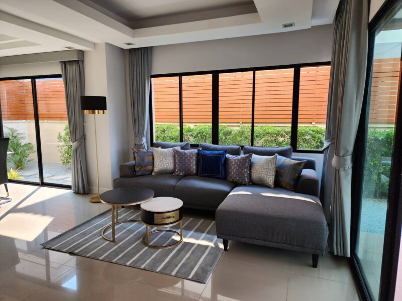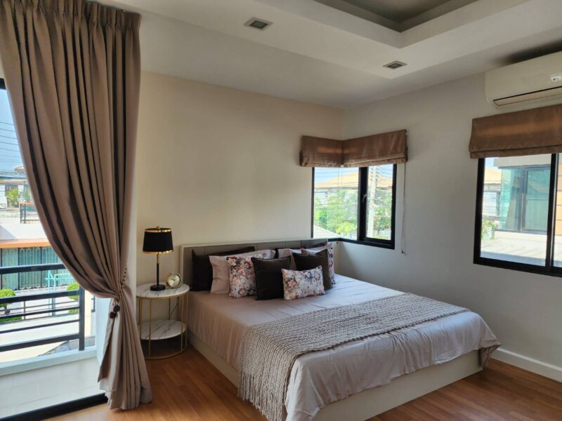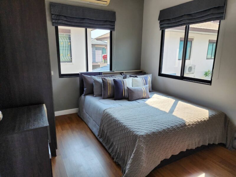 House for rent in Pattaya. 2 story house, size 40 square wah or 160 square meters The usable area is 210 square meters, including both floors, a parking lot and a kitchen, 3 bedrooms, 2 bathrooms, parking and is pet friendly. Located in a quiet and secure village. This house is ready to move in and fully furnished. Only 15 minutes from Central Pattaya, 5 minutes from Sukhumvit Road, 5 km from Ocean Marina Yacht Club and 5 km from the Phoenix Golf Course, and Siam Club Golf Course. Club just 15 minutes