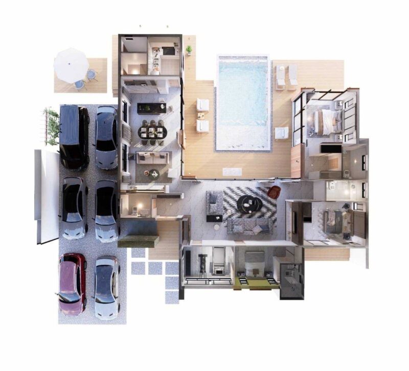 CCTV, Air Conditioning, Cable TV/DVD, Quiet Location, 24Hr Security, Car Parking, Water Pump and tank, Microwave, Refrigerator, Private pool, Built in air conditioning, Kitchenette, Securities, Empty shelf