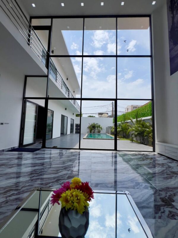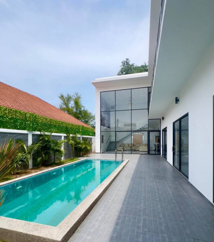Pool Villa on Pratumnak Hill, 6 bedrooms, 7 bathrooms, size 322 square meters, living area 585 square meters, swimming pool 8 meters long, living room ceiling height 8 meters, balcony 220 square meters wide on the rooftop, 2 parking spaces. This house has just been completed. Complete with furniture and decorations Ready to move in and can also travel easily Located near Jomtien Beach Central Festival Mall, Pattaya Beach, Walking Street This house is available for viewing at a price of 37 million baht under a Thai company.