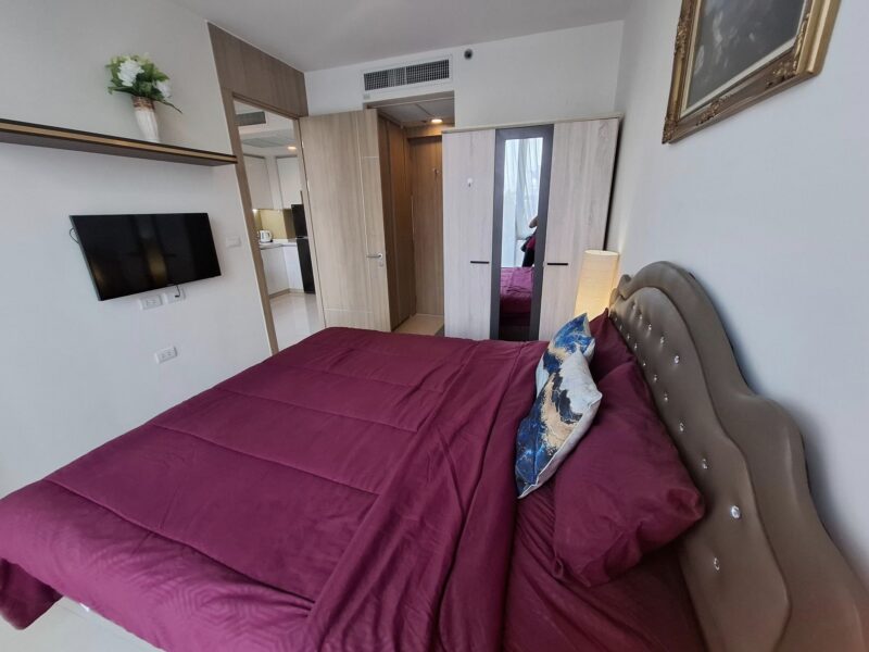 This is 1 bedroom, size 35 square meters, at Riviera Wongamat Condo at Wong Amat Beach, North Pattaya, 2nd floor, swimming pool view. Inside this room is decorated and fully furnished, such as 2 TVs, washing machine, refrigerator, microwave. Rental price: 1 year contract, 20,000 baht per month, 2 month deposit, 6 month contract, 22,000 baht per month, 1.5 month deposit.