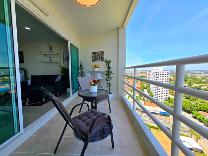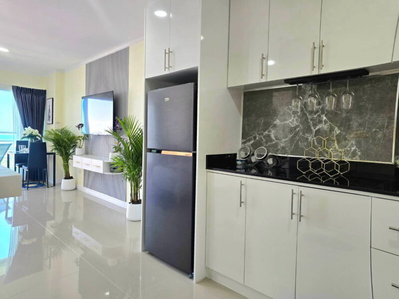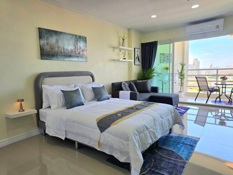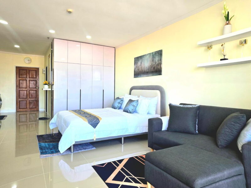 Brand new studio with all new furniture on 20th floor -/ sea view, beach access (Dongtan beach) New Sale Price: 2,990,000 Baht. (Company Name / Thai name) Includes company transfer. New room with fully furnished includes linens, cookware, dishes, glassware. The located is at View Talay 5D condo, Dongtan beach, Jomtien. Studio 1 bathroom, room size is 48 Sq.meter. on 20th floor Jomtien side. European kitchen, fully furnished, washing machine, new microwave, new 55″ smart TV, new hob and hood, new furniture. Communal swimming pool, garden, mini-mart, restaurant, laundry shop, parking, 24 hours security. On taxi and baht bus route. Nearby restaurants, hotels, banks, supermarket, nightlife