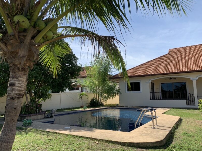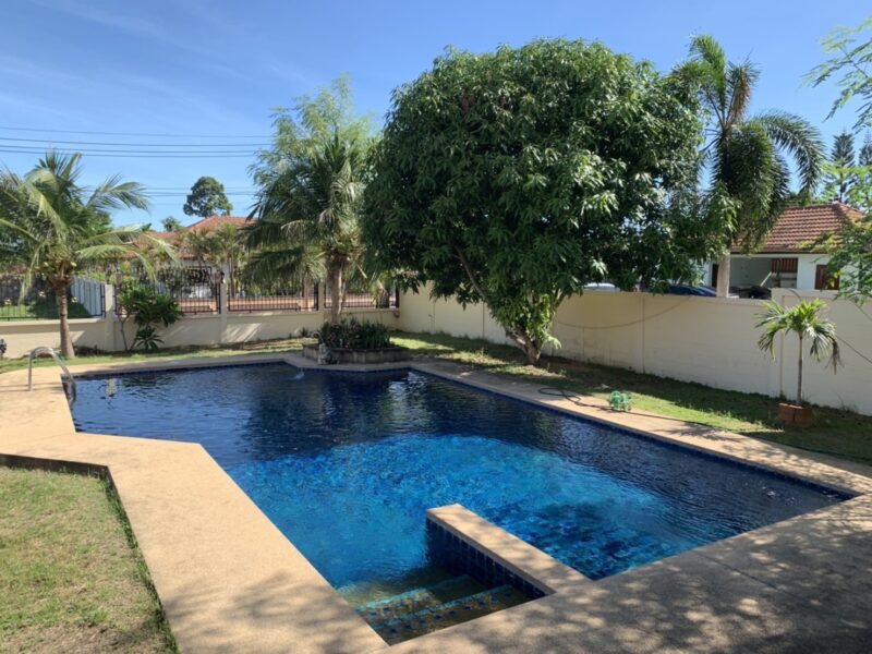 This house has a size of 247 square wah or 988 square meters, 5 bedrooms, 6 bathrooms, 1 living room, a garden surrounding the house and a private swimming pool. Parking can park up to 5 cars. Located in Pattaya. Can travel to Sukhumvit Road within 15 minutes. Bangkok Pattaya Hospital 25 minutes. Bus station Pattaya-Bangkok-Hua Hin-Samui 6 km. Pattaya Beach 8 km. terminal21 8 km. School Regent’s International 14 km.