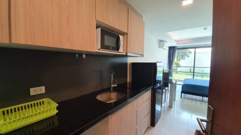 This unit is a studio room at Laguna Beach Resort 2 Condo, Thepprasit Road, size 24 square meters, located on the 1st floor, garden view. The room has complete furniture such as a microwave, refrigerator, air conditioning. At a rental price of 7,000 baht per month. Laguna Beach Resort 2 Condo has many amenities such as a large swimming pool. Children’s swimming pool, sauna, garden, lobby, parking, 24-hour security system. You can also go to Jomtien Beach only 1 km., Rom Pho Market 500 meters, Thepprasit Road 3 km., Pratumnak Hill 4 km.