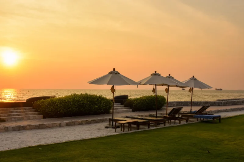 Na Jomtien is a coastal area located south of Pattaya, Thailand, known for its more relaxed and less commercialized atmosphere compared to central Pattaya. It features a beautiful, quieter beach that is ideal for swimming, sunbathing, and enjoying seafood at local beachfront restaurants. The area is also home to attractions such as the Cartoon Network Amazone Waterpark and the serene Wat Na Jomtien temple. Na Jomtien offers a range of accommodations, from luxury resorts to boutique hotels, catering to various preferences. Its blend of tranquil beaches and nearby attractions makes Na Jomtien a popular choice for those seeking a peaceful retreat with convenient access to Pattaya’s amenities.