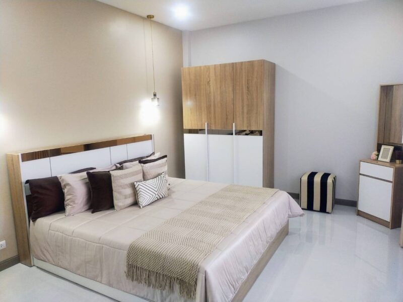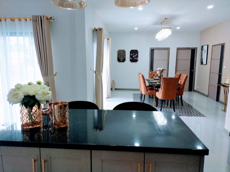 Executive house for sale.4 bedroom All with ensuite bathroom, total bathroom, 5 , European kitchen fitted to high standard delightful lounge and dinning area outside parking, Swimming pool, out side cooking and BBQ area ,At the rear of the house is a laundry area, all so a putting green. Its approximately 20 minutes drives to Pattaya City