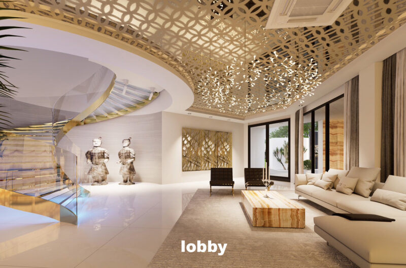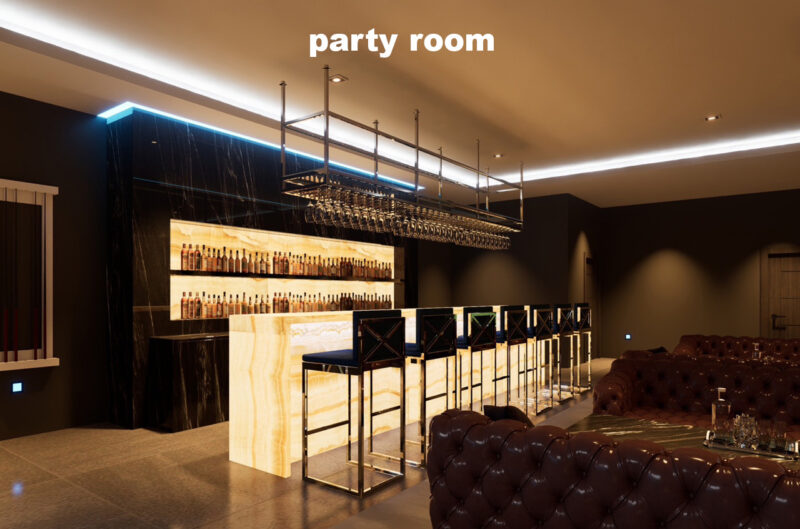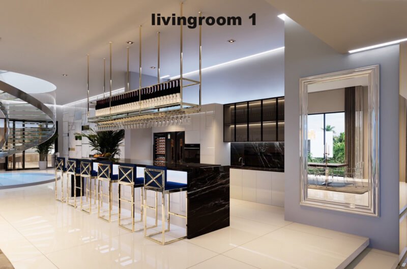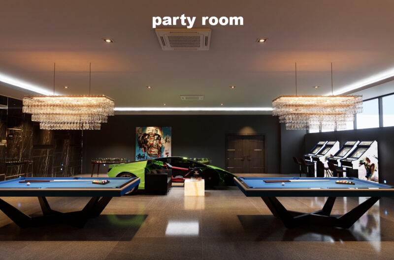 Large dinning/kitchen area with luxury kitchen/bar outdoor bar and swimming pool with jacuzzi, outdoor water feature Chinese kitchen area, Tea room, Entertainment area(341 sqm.) with : Cinema room , Golf simulator, bar, gaming machines, Private professional tennis court, Outdoor water decoration,Etc
