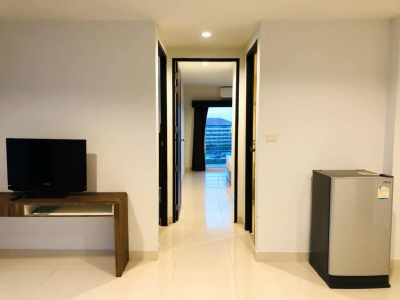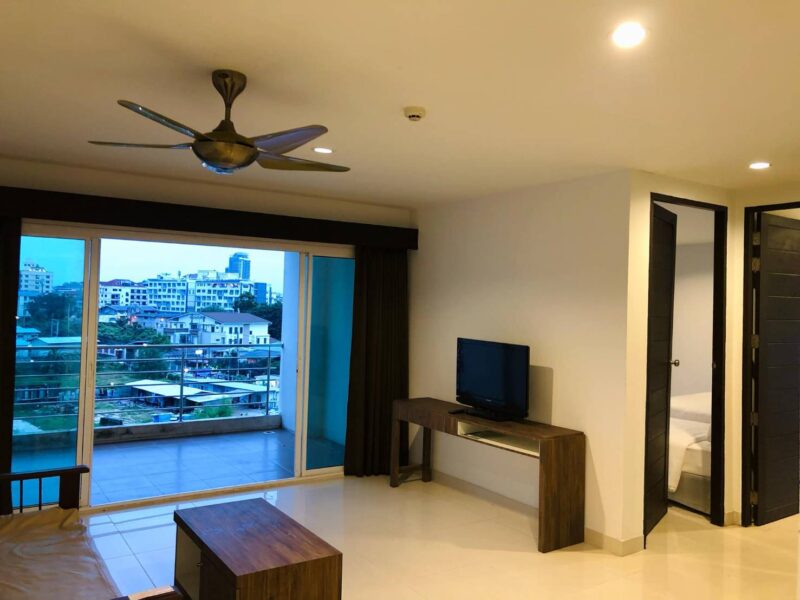 This is a 2 bedroom, 2 bathroom, 100.88 square meter unit located at Wongamat Privacy Residence, Na Kluea, North Pattaya. The unit has built-in furniture, which you can buy and decorate in your own style. This unit is located on the 7th floor with a pool view. It is a large 2 bedroom unit with a spacious living room. You can live with your family or alone.