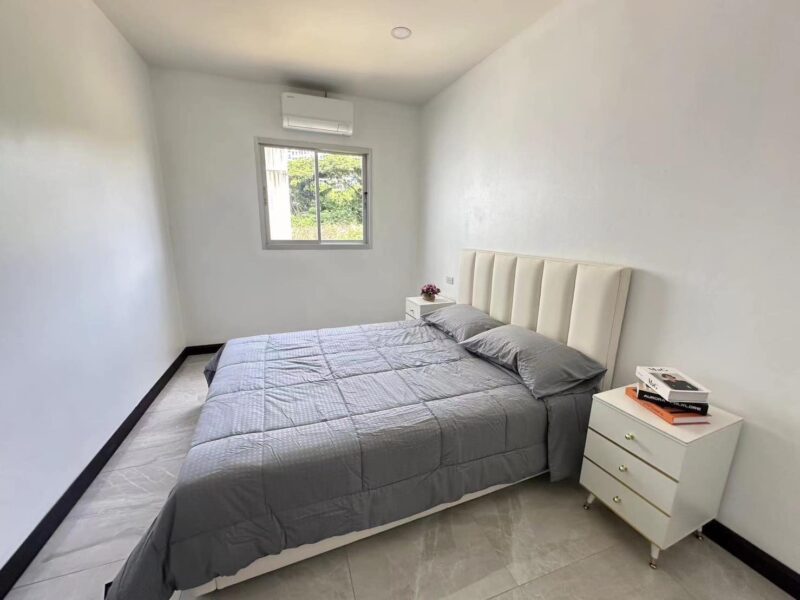 This is a Thai style pool villa in Jomtien. It has 4 bedrooms, 3 bathrooms, land area 392 sq.m., living area 220 sq.m., 2-storey house with private swimming pool, parking lot. The house is fully furnished and ready to move in. There is a European kitchen, living room with a large smart TV, dining area, garden for sitting. This pool villa has a yearly tenant, rent 80,000 baht per month and is located in Jomtien, 5 minutes from the beach and 500 meters from Sukhumvit Road. Selling price 11.8 million baht under Thai company ownership, transfer fee 50/50