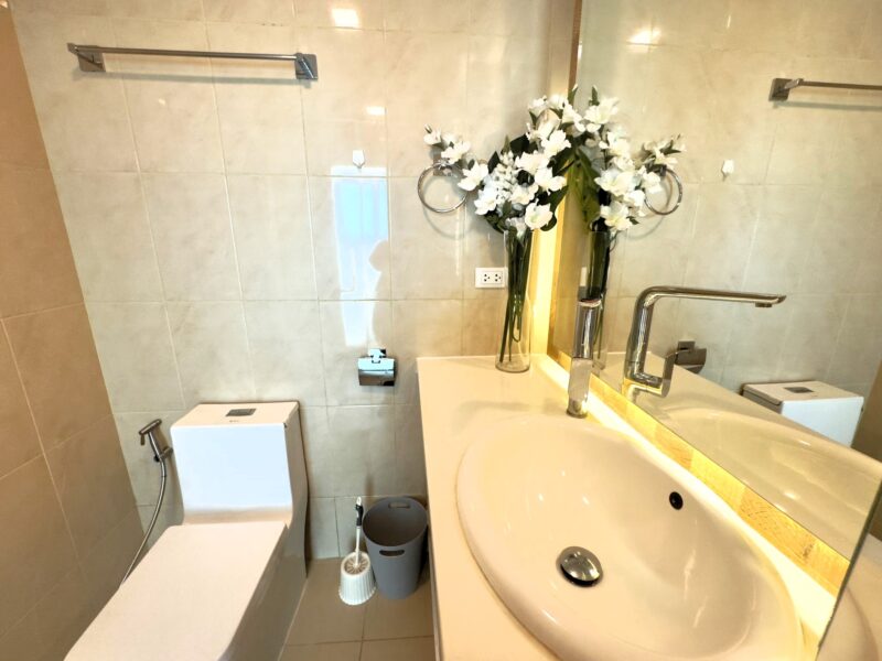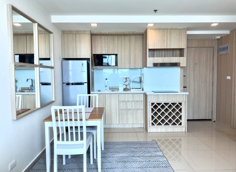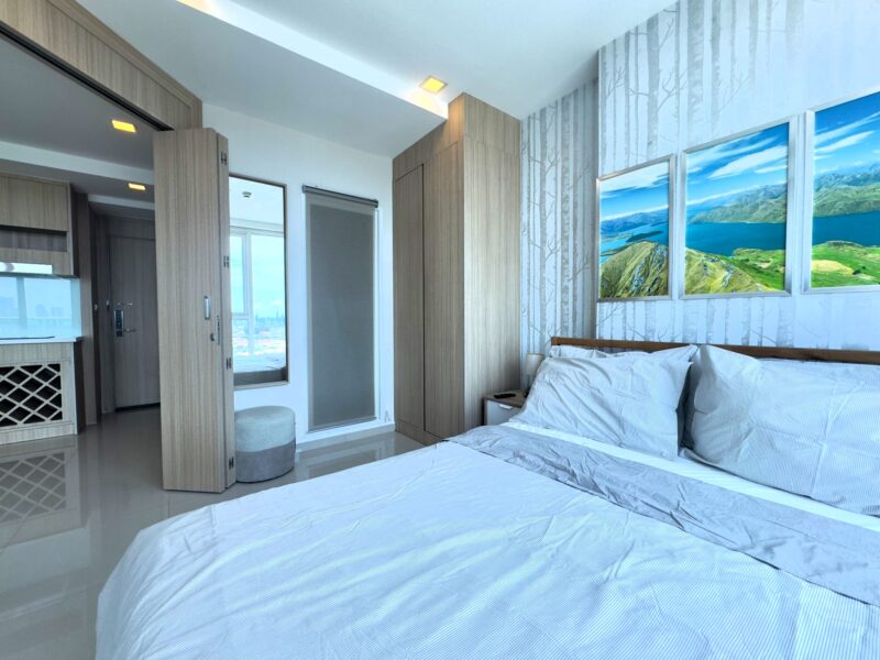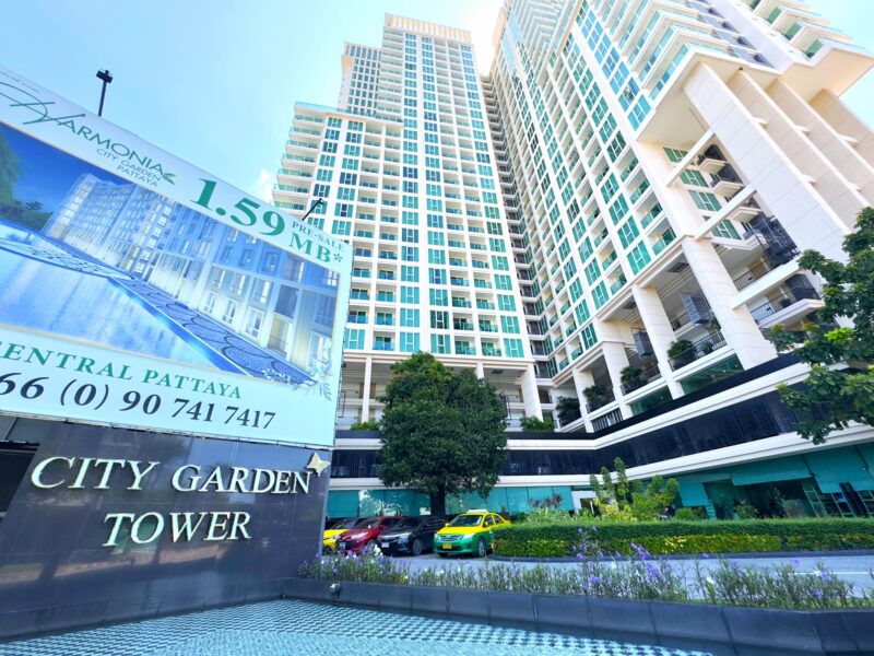 This is a 35 sqm 1 bedroom at City Garden Tower Condominium located on the 19th floor with 180-degree views of Pattaya City and the sea. The room is fully furnished and ready to move in. City Garden Tower is a new condo in the heart of Pattaya, located on Third Road, making it convenient for you to travel. It is close to important places such as Soi Buakhao 5 minutes, Central Festival Shopping Mall 2 km, Pattaya Beach 2 km, Walking Street 2 km, Pattaya City Hospital 700 meters. Third Road is also adjacent to Pattaya South Road and Thepprasit Road, meaning that from City Garden Tower, you can travel to Jomtien Beach via Thepprasit Road within 5 minutes and Khao Phra Tamnak, it takes only 10 minutes to get to Sukhumvit Road.