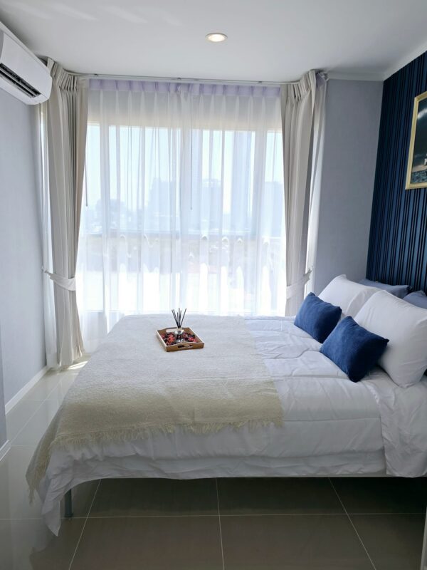 This is a 1 bedroom, 1 bathroom, 32 sq.m. condo at Lumpini Park Beach Jomtien on the 8th floor with a sea view. The condo is fully furnished and ready to move in. Suitable for living or investment. Lumpini Park Beach Jomtien is located on Jomtien Road, just a 1-minute walk to Jomtien Beach. Completed in 2013, it has 30 floors and 138 units. The selling price is 2.19 million baht. It can be purchased with foreign freehold.