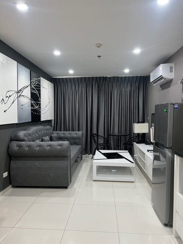 The Vision is a condominium project, developed by Matrix, located at Phra Tamnak, Na Kluea, Pattaya, Chon Buri 20150. Matrix is also the developer behind Art on the Hill, The Empire Jomtien and Sunset Boulevard Residence. Construction of The Vision was completed in 2014. Condominium comprises of a single building, having 23 floors and includes 221 units. The one bedroom apartment offers sea view with beautiful decoration. Rent price is including 3 BB internet.