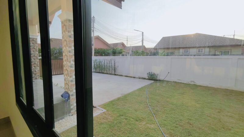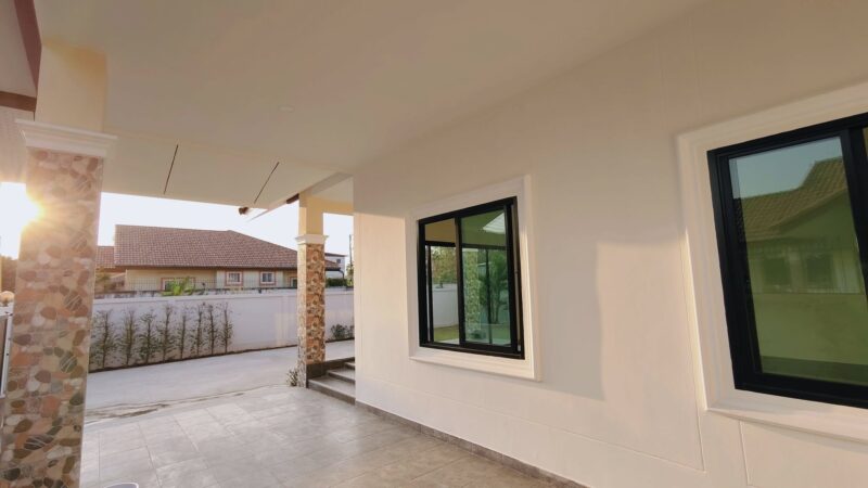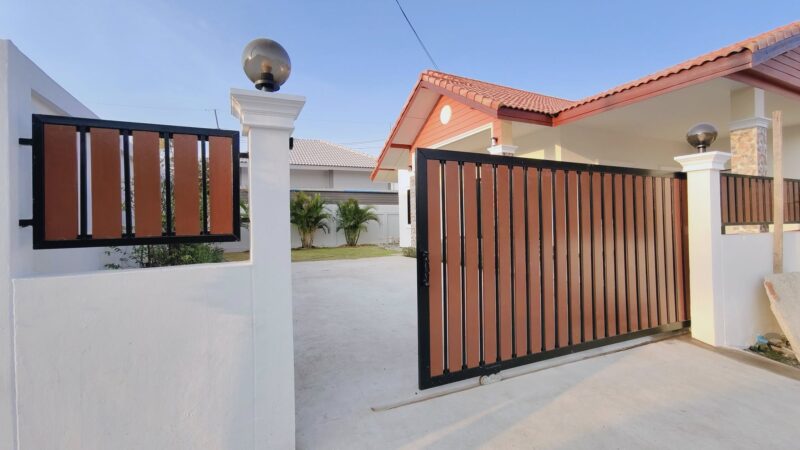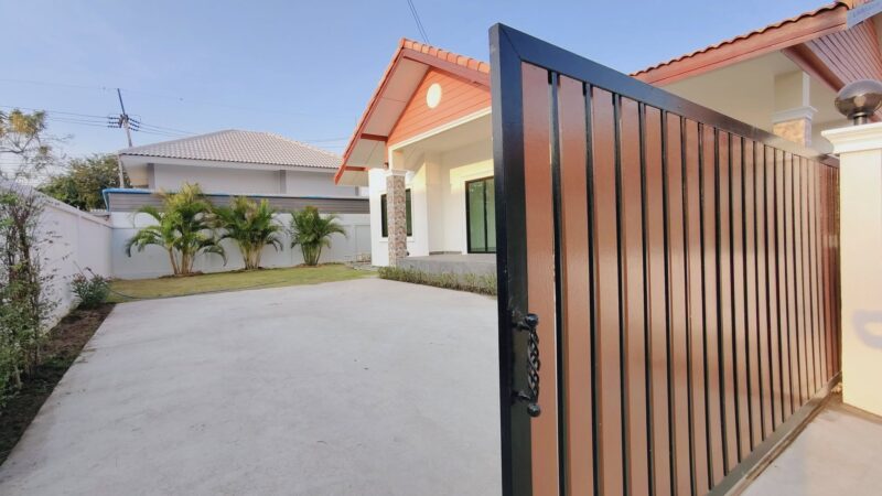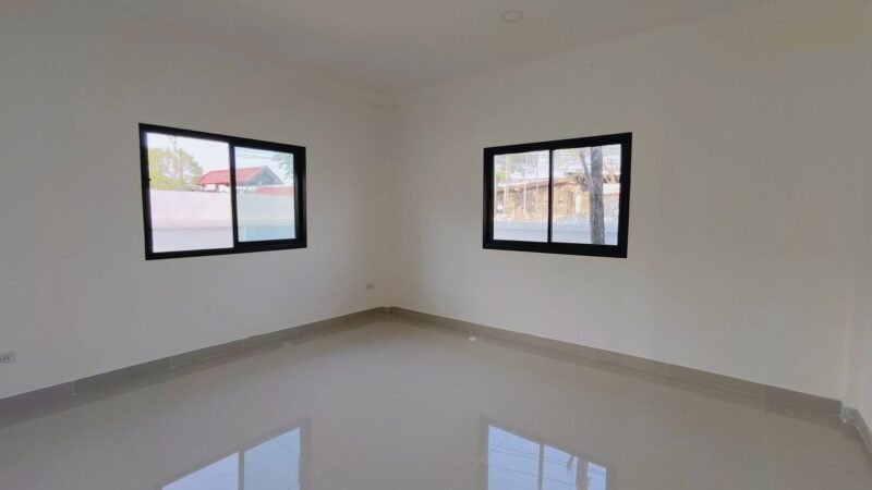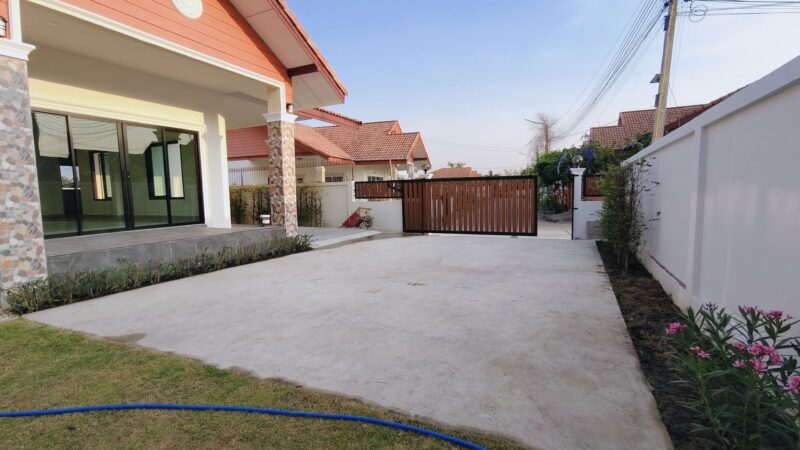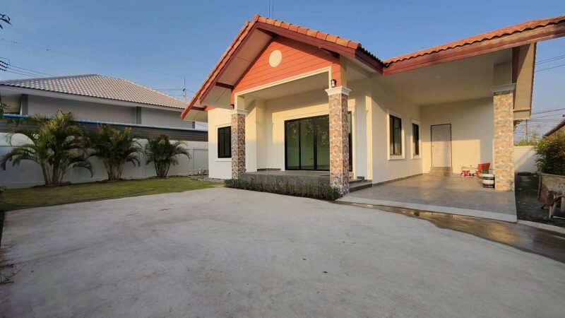This is a single storey house on a land area of ​​93 square wah, with a usable area of ​​200 square meters, 3 bedrooms, 2 bathrooms and a kitchen. There is a parking space for 2 cars. The house will be completed in 2 weeks. It comes with free gifts, curtains, air conditioners, water tanks, water pumps and a garden. This house is in a secure village with a communal swimming pool in Huay Yai, Pattaya.