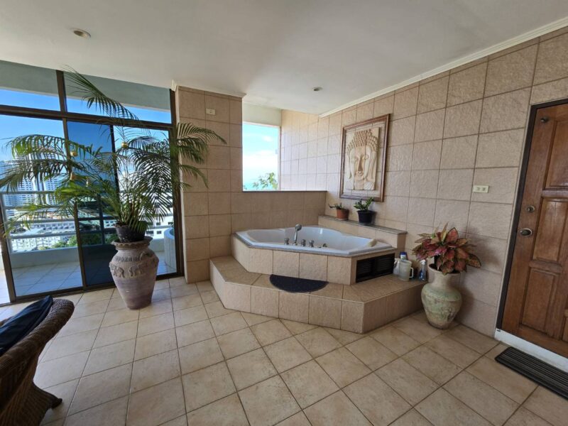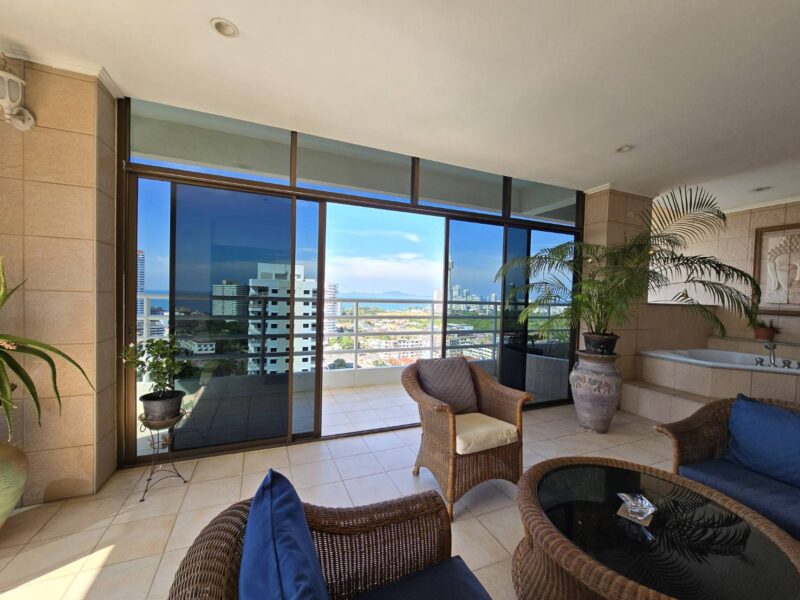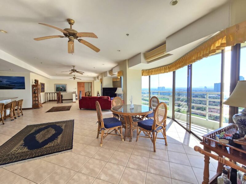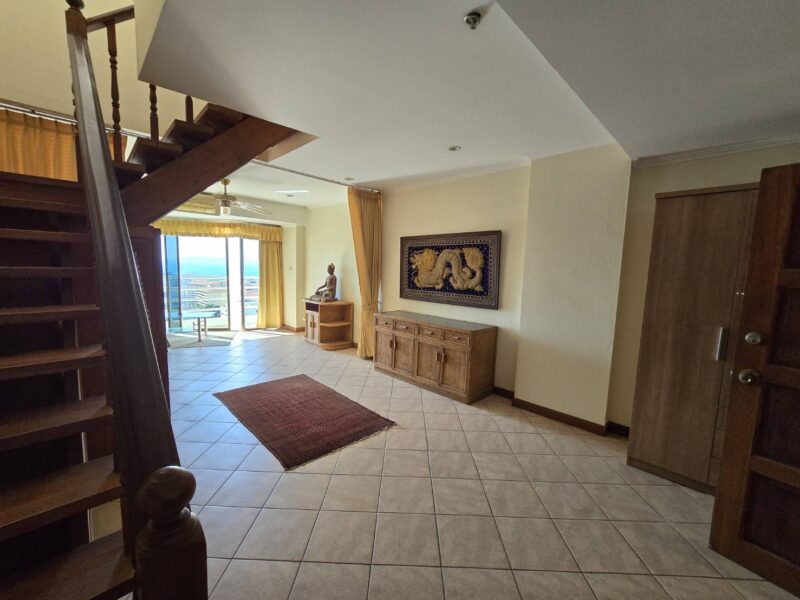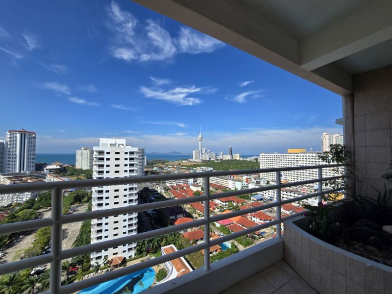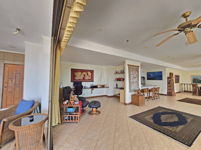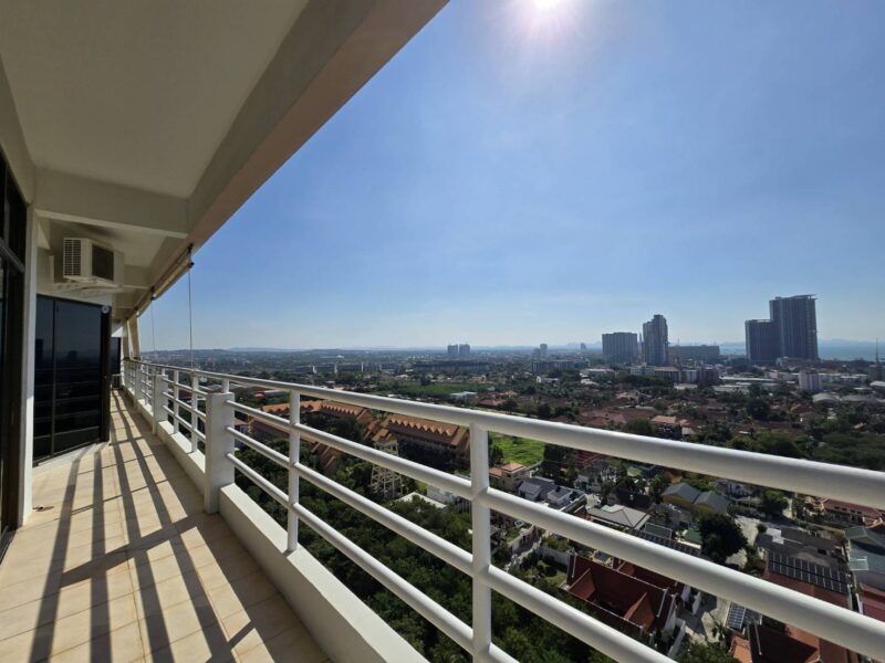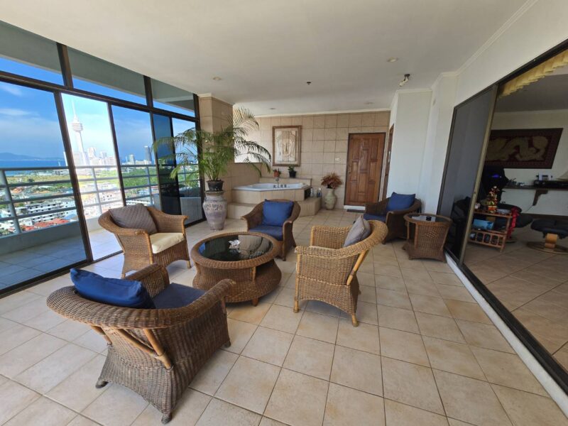 The View Talay 2B penthouse is a luxurious front-corner unit spanning 266 sq.m. with breathtaking panoramic views. It features two spacious bedrooms and two modern bathrooms, offering a high-end living experience. The unit is available under a foreign name, making it an excellent option for international buyers. Located in a prime area, it provides easy access to Jomtien Beach, shopping, dining, and entertainment. This rare penthouse is perfect for those seeking a spacious and elegant coastal residence.